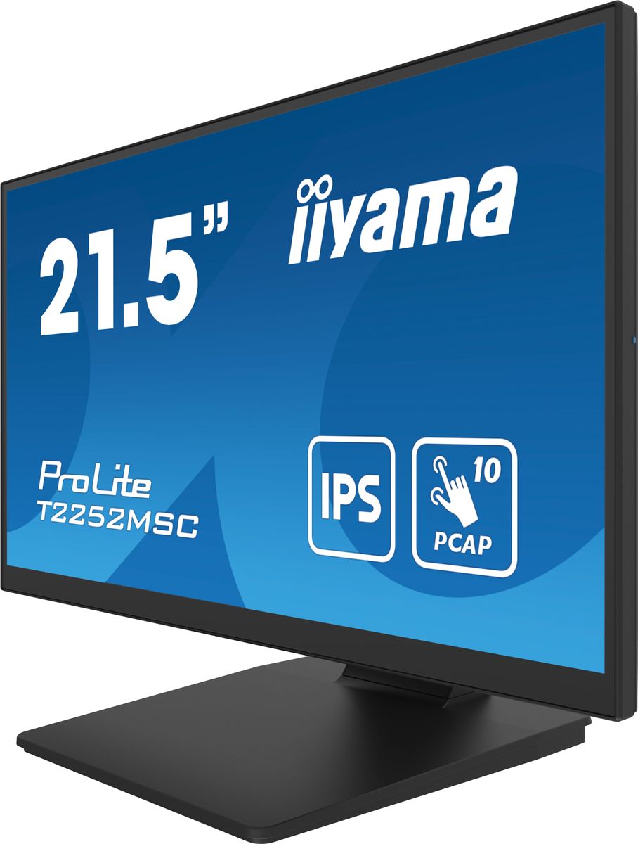 iiyama ProLite T2252MSC-B2AG. Dimensioni diagonale schermo: 54,6 cm (21.5"), Risoluzione del display: 1920 x 1080 Pixel, Tipologia HD: Full HD, Tecnologia display: LCD, Tempo di risposta: 5 ms, Rapporto d'aspetto nativo: 16:9, Angolo di visualizzazione (orizzontale): 178°, Angolo di visualizzazione (verticale): 178°. Altoparlanti incorporati. Hub USB integrato, Versione dell'hub USB: 2.0 / 3.2 Gen 1 (3.1 Gen 1). Montaggio standard VESA. Colore del prodotto: Nero