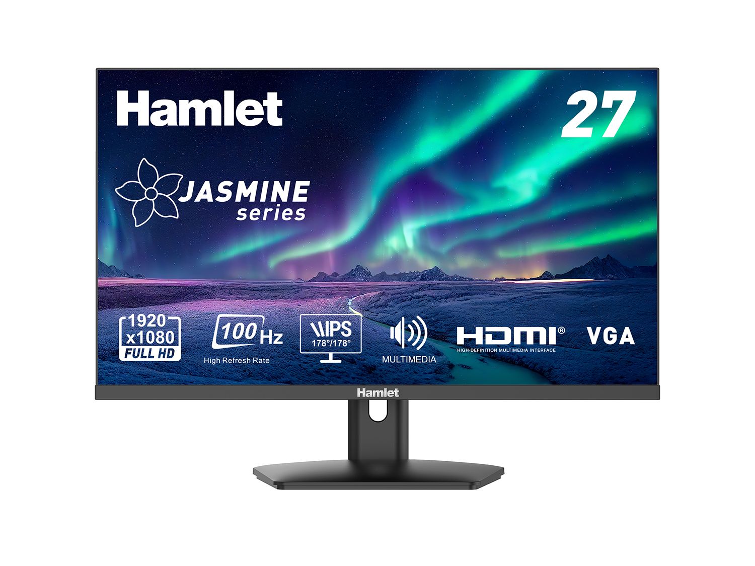 Hamlet HM27JF-V. Dimensioni diagonale schermo: 68,6 cm (27"), Risoluzione del display: 1920 x 1080 Pixel, Tipologia HD: Full HD, Tecnologia display: LED, Rapporto d'aspetto nativo: 16:9, Angolo di visualizzazione (orizzontale): 178°, Angolo di visualizzazione (verticale): 178°. Altoparlanti incorporati. Montaggio standard VESA. Colore del prodotto: Nero