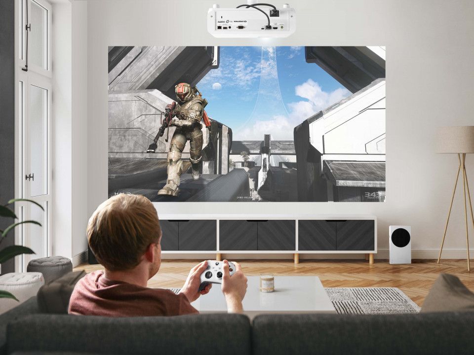 Viewsonic PX749-4K. Luminosità proiettore: 4000 ANSI lumen, Risoluzione nativa del proiettore: 2160p (3840x2160), Rapporto di contrasto: 12000:1. Tipo di sorgente luminosa: Lampada, Durata della sorgente luminosa: 4000 h, Durata della sorgente luminosa (modalità risparmio): 20000 h. Messa a fuoco: Manuale, Lunghezza focale: 12 - 15.6 mm, Range di apertura (F-F): 1,94 - 2,12. Formato video analogico: NTSC, PAL, Modalità video supportate: 480i, 480p, 720p, 1080i, 1080p, 2160p. Tipo interfaccia seriale: RS-232, Tipo di connettore HDMI: Taglia piena, Tipo di porta di servizio: USB tipo A