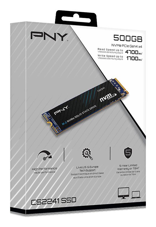 PNY M280CS2241-500-RB. Capacità SSD: 500 GB, Dimensione SSD: M.2, Velocità di lettura: 4700 MB/s, Velocità di scrittura: 1700 MB/s, Componente per: PC/PC portatile