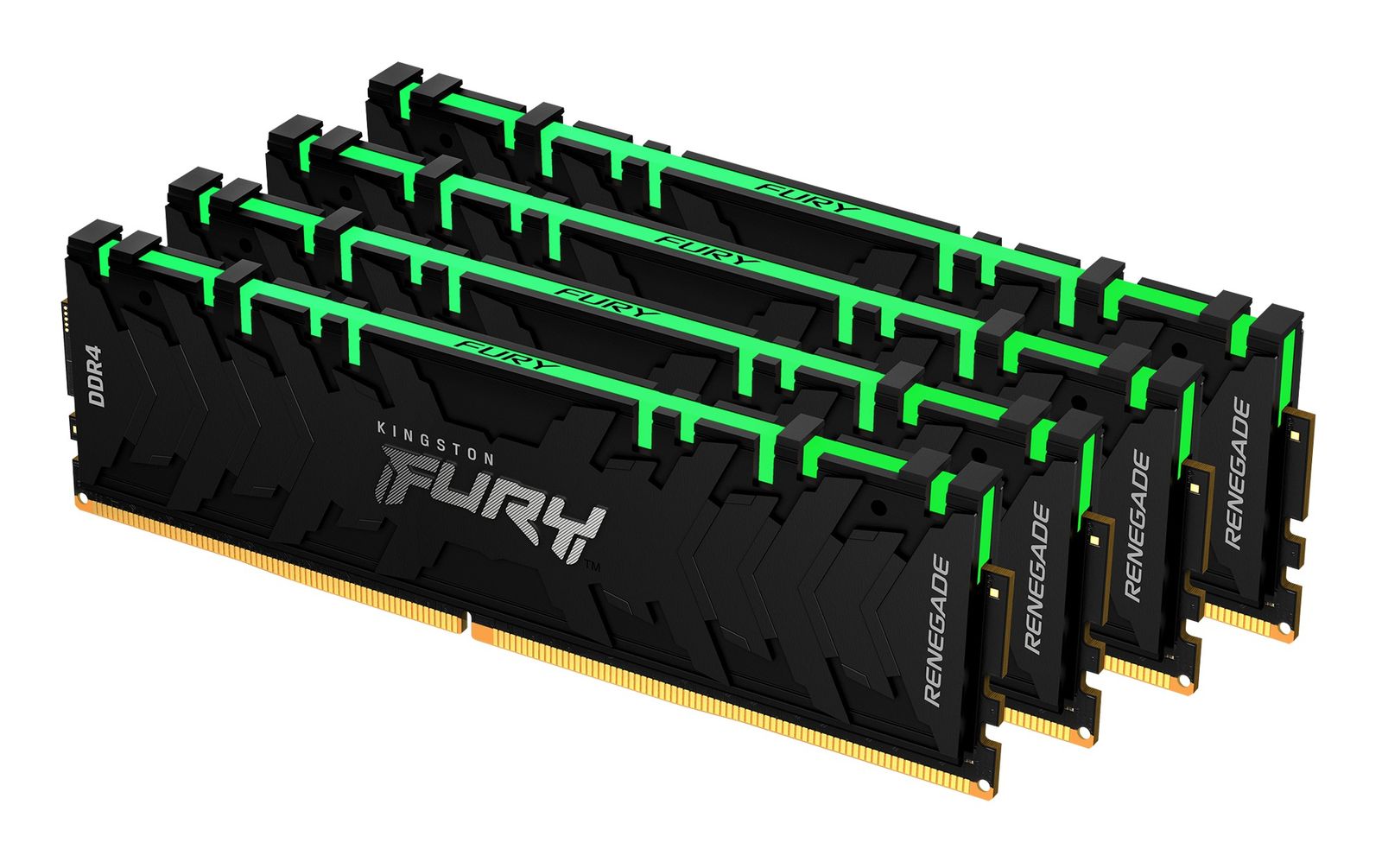 Kingston Technology FURY Renegade RGB. Componente per: PC/server, RAM installata: 64 GB, Layout di memoria (moduli x dimensione): 4 x 16 GB, Tipo di RAM: DDR4, Velocità memoria: 3000 MHz, Fattore di forma memoria: 288-pin DIMM, Latenza CAS: 15