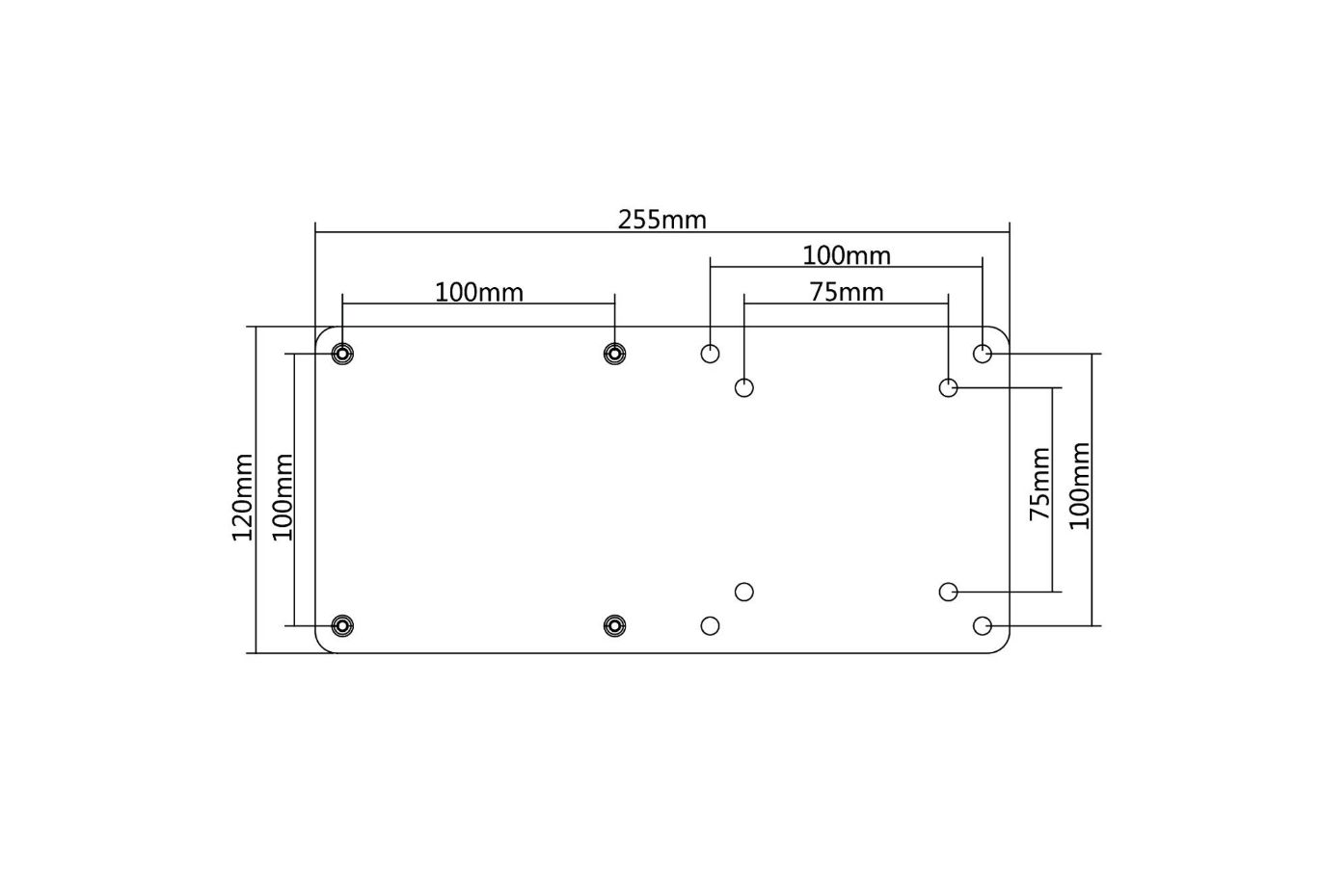 ITB PM5789. Tipo di prodotto: Piastra per dispositivo, Colore del prodotto: Nero, Panel mounting interface 24/5000 Interfaccia per montaggio a pannello: 75 x 75,100 x 100 mm. Larghezza: 255 mm, Profondità: 2 mm, Altezza: 120 mm. Quantità per pacco: 1 pz