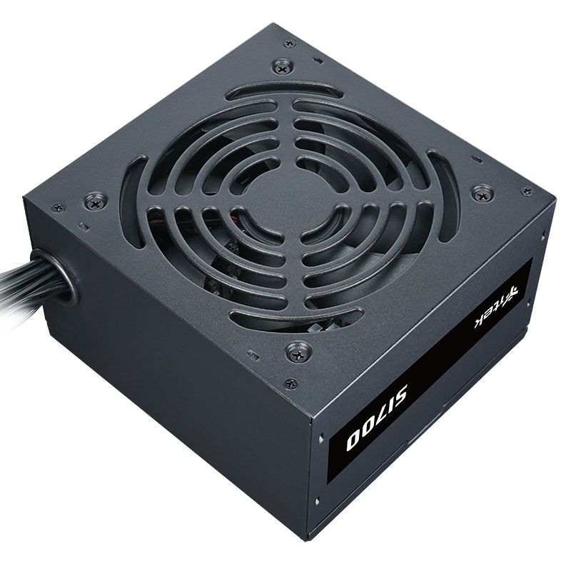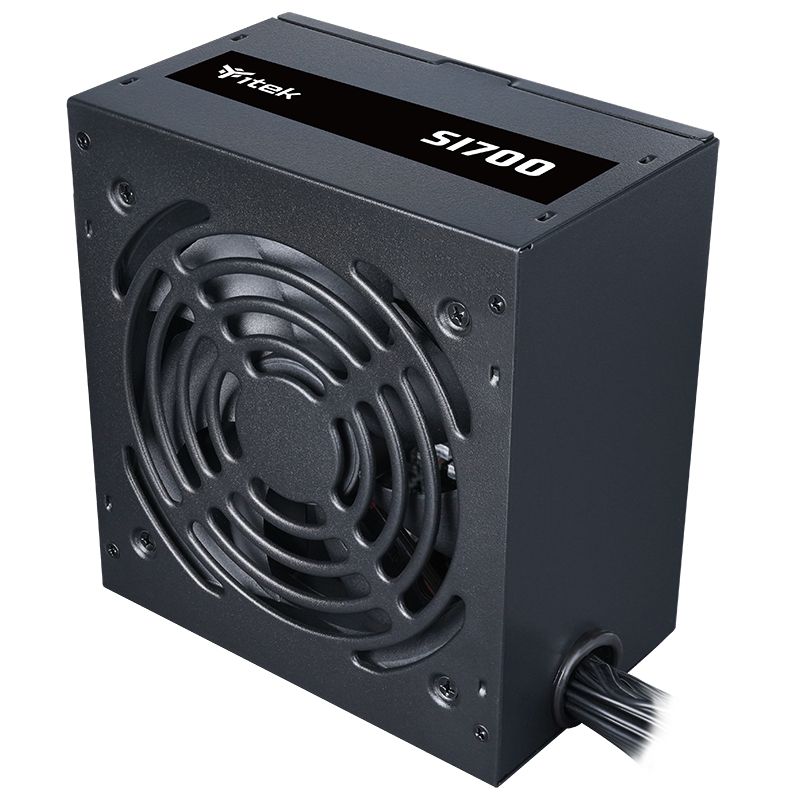 itek SI700. Potenza totale: 700 W, Tensione di ingresso AC: 100 - 240 V, Tipo di correttore del fattore di potenza (PFC): Attivo. Connettore scheda madre: 20+4 pin ATX, Lunghezza del cavo di alimentazione della scheda madre: 60 cm, Lunghezza del cavo di alimentazione SATA: 500 mm. Utilizzo: PC, Fattore di forma dell'unità di alimentazione (PSU): ATX, Certificazione 80 PLUS: 80 PLUS. Colore del prodotto: Nero, Tipo di raffreddamento: Attivo, Diametro del ventilatore: 12 cm. Larghezza: 140 mm, Profondità: 150 mm, Altezza: 86 mm