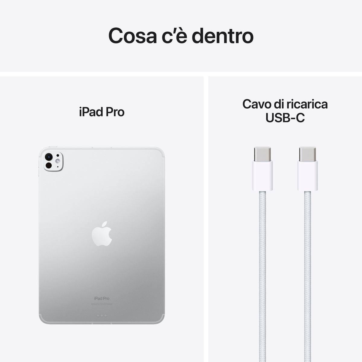 Apple iPad Pro 11'' Wi-Fi + Cellular 1TB Standard glass - Argento. Dimensioni schermo: 27,9 cm (11"), Risoluzione del display: 2420 x 1668 Pixel, Tecnologia display: OLED. Capacità memoria interna: 1 TB. Famiglia processore: Apple M, Modello del processore: M4. RAM installata: 16 GB. Risoluzione fotocamera posteriore (numerico): 12 MP, Tipo di fotocamera posteriore: Doppia fotocamera, Risoluzione fotocamera frontale (numerico): 12 MP, Fotocamera frontale. Wi-Fi standard: Wi-Fi 6E (802.11ax). Peso: 760 g. Sistema operativo incluso: iPadOS 17. Colore del prodotto: Argento