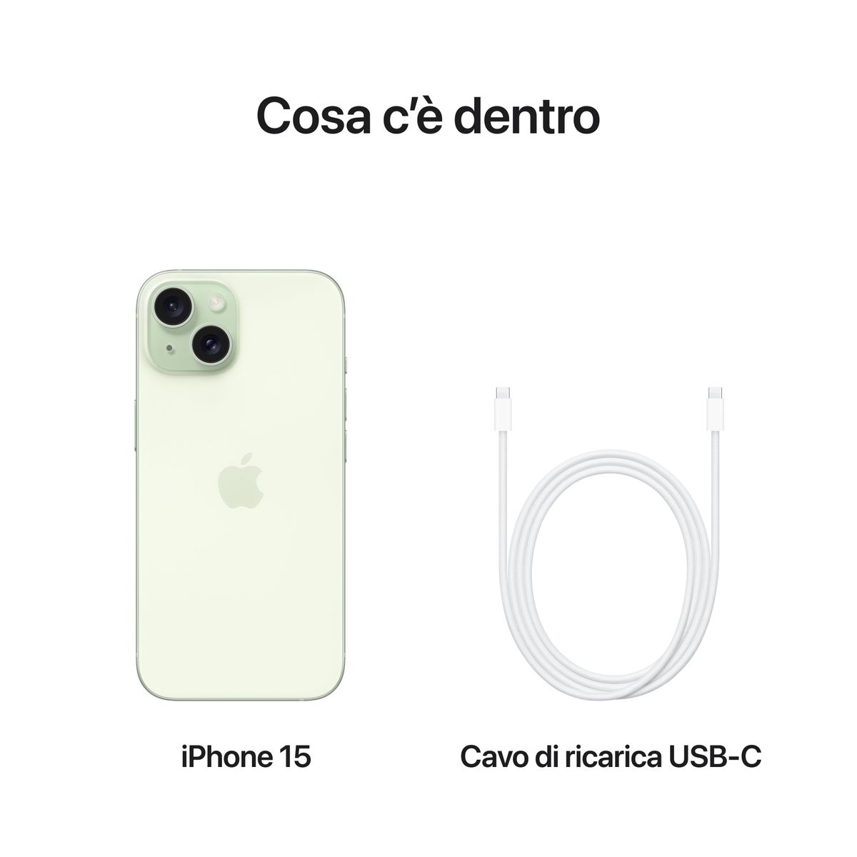 Apple iPhone 15 512GB Verde. Dimensioni diagonale schermo: 15,5 cm (6.1"), Risoluzione del display: 2556 x 1179 Pixel. Famiglia processore: Apple, Modello del processore: A16. Capacità memoria interna: 512 GB. Risoluzione fotocamera posteriore (numerico): 48 MP, Tipo di fotocamera posteriore: Doppia fotocamera. Capacità della scheda SIM: Doppia SIM. Sistema operativo incluso: iOS 17. Colore del prodotto: Verde. Peso: 171 g