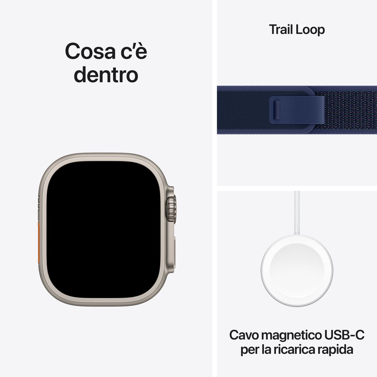 Apple Watch Ultra 2 GPS + Cellular 49mm Cassa in Titanio con Blue Trail Loop - M/L. Tecnologia display: OLED, Risoluzione del display: 410 x 502 Pixel, Touch screen. Memoria flash: 64 GB. Wi-Fi. GPS (satellitare). Peso: 61,4 g. Impermeabile fino a: 100 m, Colore cinturino: Blu, Dimensione del cinturino: M/L. Sistema operativo incluso: watchOS 11