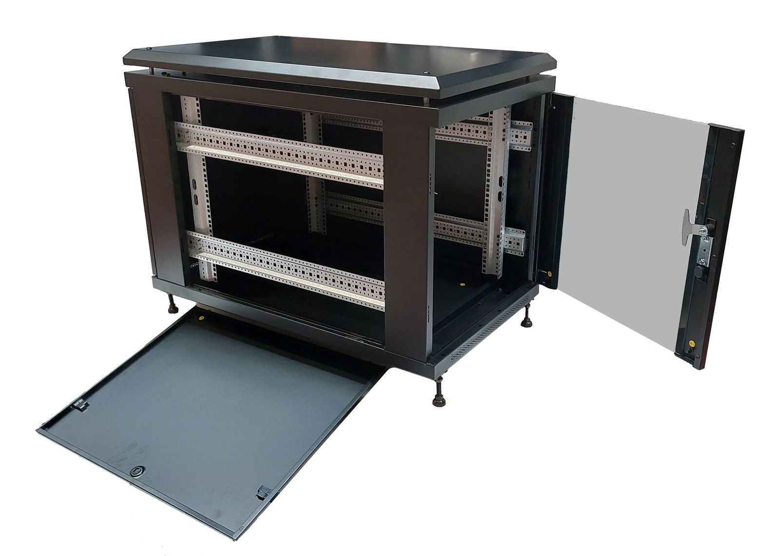 LINK ARMADIO RACK 19" 12 UNITA' (A)700X (L)600 X PROFONDITA' 800 MM. COLORE NERO PORTA VETRO. Tipo: Rack indipendenti, Capacità di rack: 12U, Lucchetti, Piedini regolabili. Peso: 70 kg. Colore del prodotto: Nero