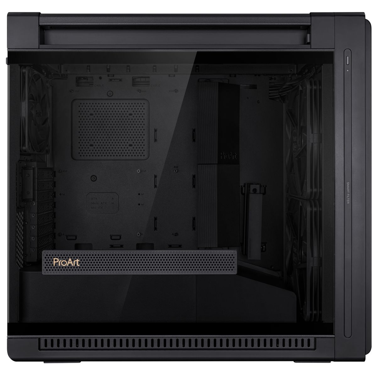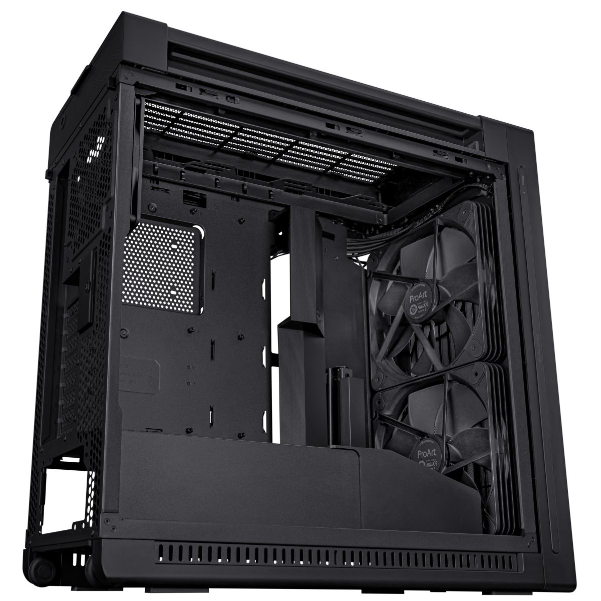 ASUS ProArt PA602. Fattore di forma: Midi Tower, Tipo: PC, Colore del prodotto: Nero. Ventole anteriori installate: 2x 200 mm, Diametro delle ventole frontali supportato: 200 mm, Rear fans installed: 1x 140 mm. Dimensioni di hard disk drive supportati: 2.5,3.5". Larghezza: 245 mm, Profondità: 593 mm, Altezza: 560 mm. Larghezza imballo: 735 mm, Profondità imballo: 370 mm, Altezza imballo: 670 mm