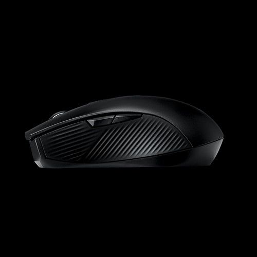 ASUS ROG Strix Carry. Fattore di forma: Mano destra. Tecnologia di rilevamento del movimento: Ottico, Interfaccia dispositivo: RF senza fili + Bluetooth, Risoluzione movimento: 7200 DPI, Tipo di pulsanti: Tasti premuti, Numero di tasti: 5, Tipo di scorimmento: Pulsanti. Alimentazione: Batterie. Colore del prodotto: Nero