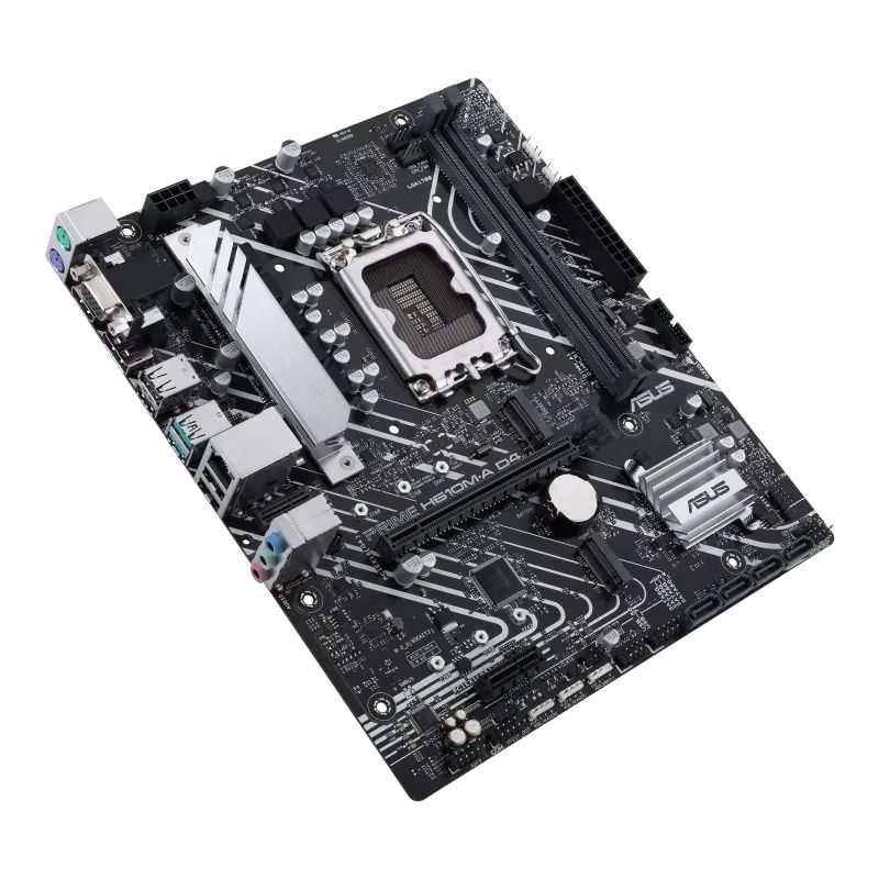 ASUS PRIME H610M-A D4-CSM. Produttore processore: Intel, Presa per processore: LGA 1700, Processori compatibili: Intel® Celeron®, Intel® Core™ i3, Intel® Core™ i5, Intel® Core™ i7, Intel® Core™ i9, Intel® Pentium®. Tipi di memoria supportati: DDR4-SDRAM, LPDDR3-SDRAM, RAM massima supportata: 64 GB, tipo di slot di memoria: DIMM. Interfacce dell'unità di archiviazione supportate: M.2, SATA III, Tipi di unità di archiviazione supportate: HDD & SSD. Tipo di interfaccia Ethernet: Gigabit Ethernet. Componente per: PC, Fattore di forma scheda madre: micro ATX, Famiglia di chipset per scheda madre: Intel