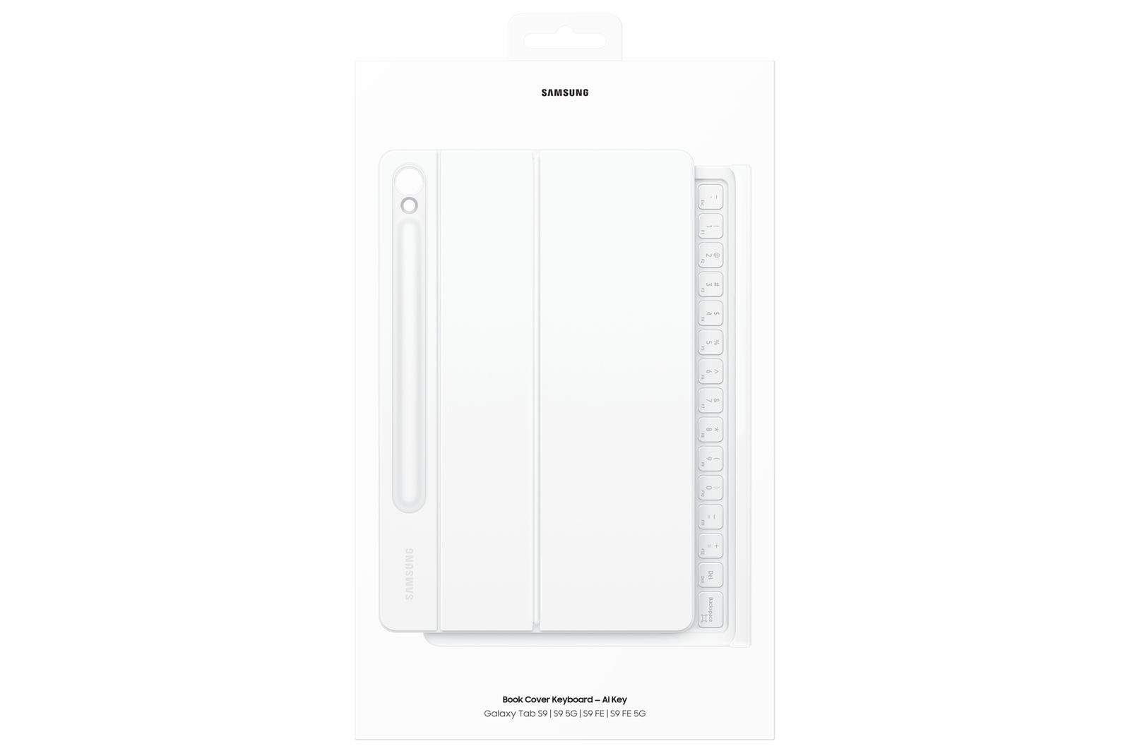 Samsung Galaxy Tab S9 Book Cover Keyboard — AI Key EF-DX725B. Linguaggio tastiera: Italiano, Dispositivo di puntatura: Touchpad. Compatibilità marca: Samsung, Compatibilità: Galaxy Tab S9, Galaxy Tab S9 FE, Colore del prodotto: Bianco. Tecnologia di connessione: Docking, Interfaccia dispositivo: Pin Pogo. Alimentazione: Dock. Larghezza: 173,7 mm, Profondità: 14,8 mm, Altezza: 254,9 mm
