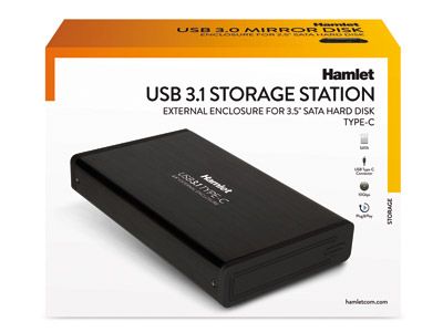 Hamlet Box esterno USB 3.0 per Hard Disk SATA 2,5 velocità di trasferimento fino a 5Gbps. Tipo di prodotto: Custodia per Disco Rigido (HDD). numero di dispositivi di archivio supportati: 1, Dimensione del dispositivo di archiviazione: 3.5", Interfacce dell'unità di archiviazione supportate: SATA, Seriale ATA II, Serial ATA III. Velocità di trasferimento dati: 10 Gbit/s. Hot-swap. Colore del prodotto: Nero. Connettore USB: USB tipo-C