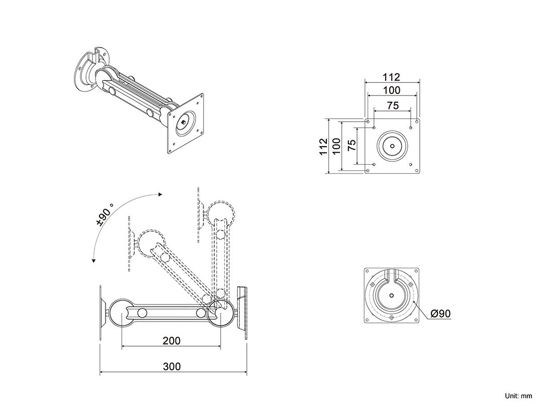 Multibrackets 2673. Montaggio: Viti, Peso massimo (capacità): 6 kg, Capienza minima dimensioni dello schermo: 17,8 cm (7"), Capienza massima dimensioni dello schermo: 81,3 cm (32"), Compatibilità interfaccia di montaggio (min): 75 x 75 mm, Compatibilità interfaccia di montaggio (max): 100 x 100 mm. Regolazione altezza, Inclinazione: -90 - 90°. Colore del prodotto: Nero