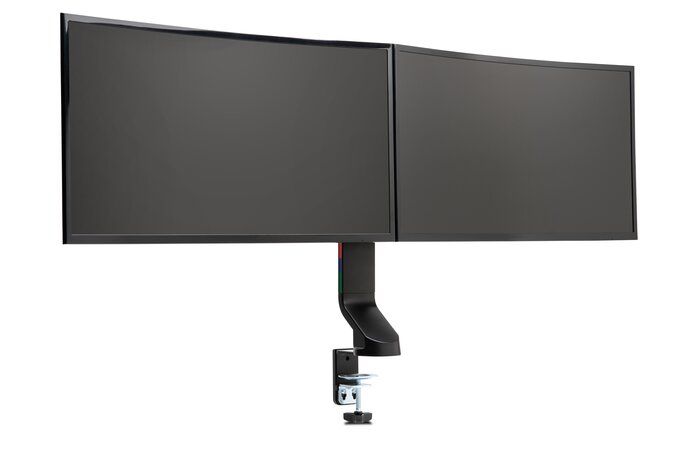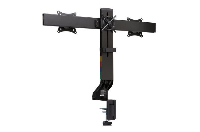 Kensington Braccio salvaspazio per monitor doppio SmartFit®. Montaggio: Morsa/Bullone di ancoraggio, Peso massimo (capacità): 8 kg, Capienza massima dimensioni dello schermo: 68,6 cm (27"). Regolazione altezza, Angolo di rotazione: -10 - 10°, Inclinazione: -10 - 10°. Colore del prodotto: Nero