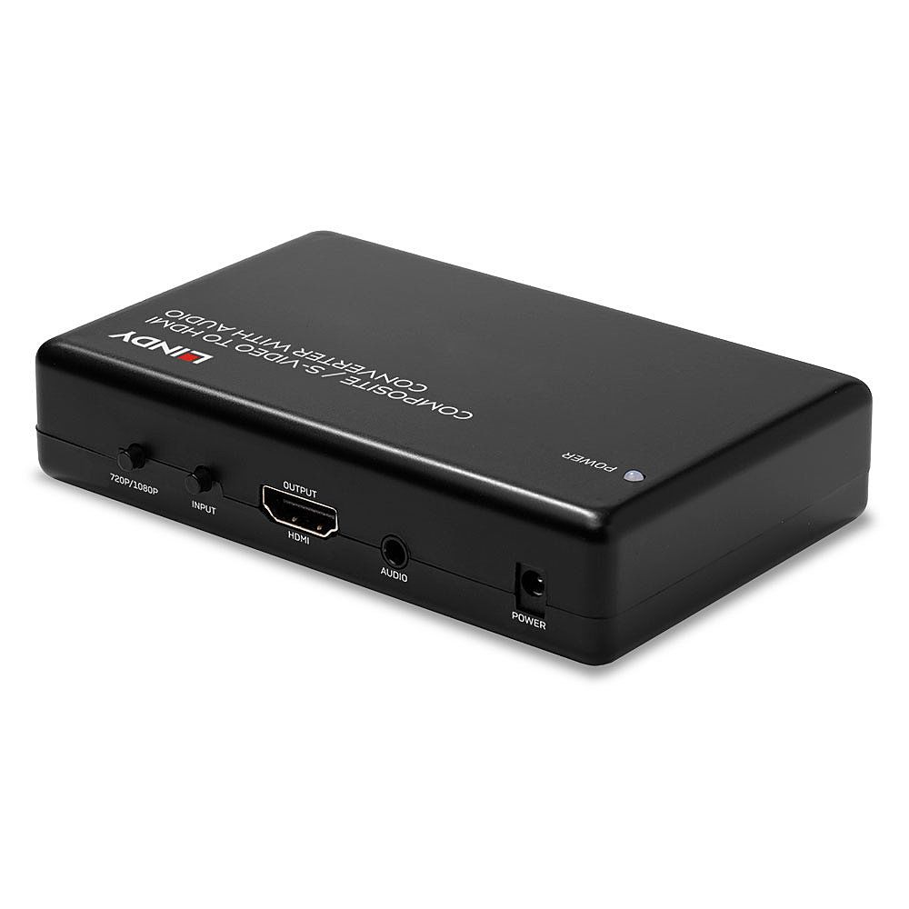 Lindy 38394. Certificazione: CE, FCC, RoHS, REACH. Modalità video supportate: 576i, 720p, 1080p, Formato video analogico: NTSC, PAL. Interfaccia host: Composite + S-Video, interfaccia output: HDMI + RCA. Larghezza: 113 mm, Profondità: 71 mm, Altezza: 24 mm. Larghezza imballo: 190 mm, Profondità imballo: 145 mm, Altezza imballo: 60 mm