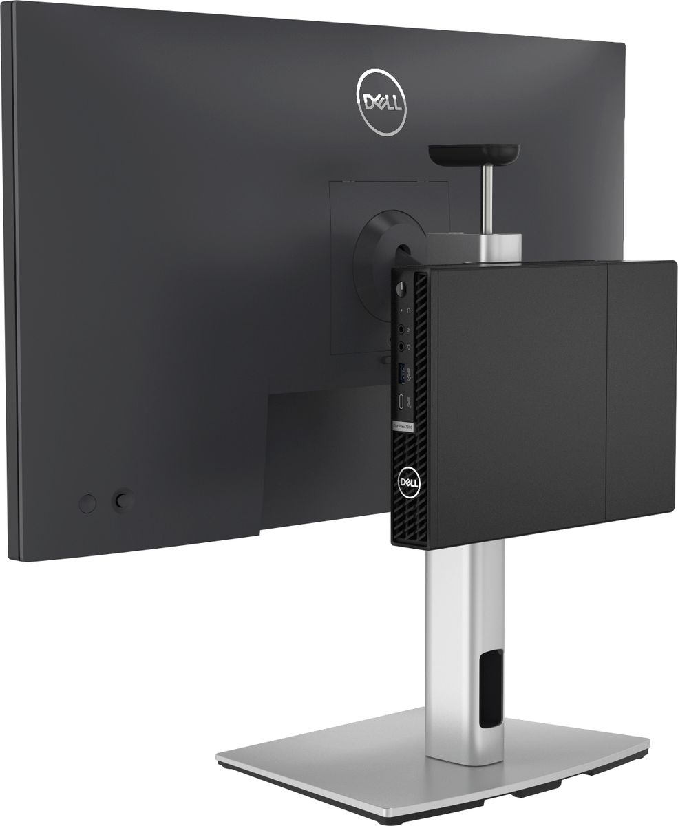 DELL Supporto AIO micro | MFS22. Peso massimo (capacità): 5,8 kg, Capienza minima dimensioni dello schermo: 48,3 cm (19"), Capienza massima dimensioni dello schermo: 68,6 cm (27"), Compatibilità interfaccia di montaggio (min): 100 x 100 mm, Compatibilità interfaccia di montaggio (max): 100 x 100 mm. Regolazione altezza, Angolo di rotazione: 90 - 90°, Inclinazione: -5 - 21°. Colore del prodotto: Argento, Nero