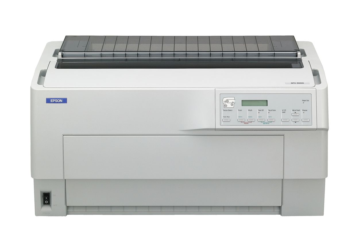 Epson DFX-9000N. Risoluzione massima: 240 x 144 DPI, Massima velocità di stampa (draft): 1550 cps, Velocità di stampa normale: 1320 cps. Dimensioni massime di stampa: A4 (210 x 297 mm). Colore del prodotto: Grigio, Dimensioni buffer: 128 KB, Livello di pressione acustica (stampa): 58 dB. Connettività opzionale: USB 2.0. Testina di stampa: 9-pin, Durata testina di stampa: 400000 milioni di caratteri, Durata del nastro (nero, draft): 15 milioni di caratteri