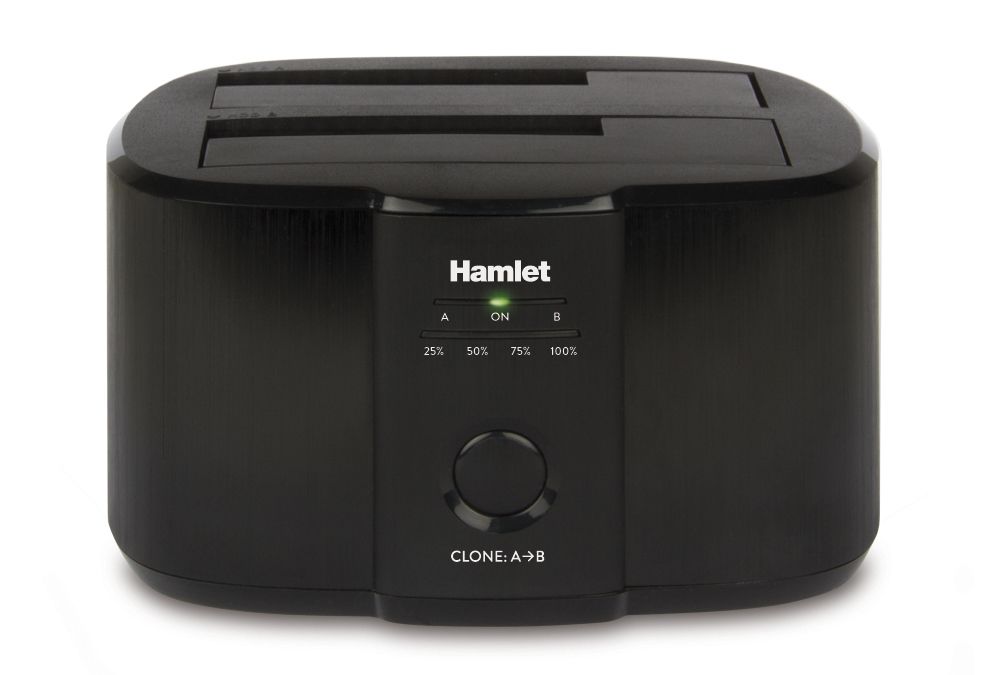 Hamlet USB 3.0 Docking Station per hard disk sata da 2,5'' o 3,5'' usb 3.0. Capacità massima di memoria: 4 TB. Colore del prodotto: Nero, Materiali: Alluminio, Plastica, Indicatori LED: Attività. Larghezza: 142 mm, Profondità: 103 mm, Altezza: 83 mm. Sistema operativo Windows supportato: Windows 10 Education, Windows 10 Education x64, Windows 10 Enterprise, Windows 10 Enterprise x64,..., Compatibilità sistema operativo Mac: Mac OS X 10.4 Tiger, Mac OS X 10.5 Leopard, Mac OS X 10.6 Snow Leopard, Mac OS X 10.7 Lion, Mac OS.... Cavi inclusi: USB