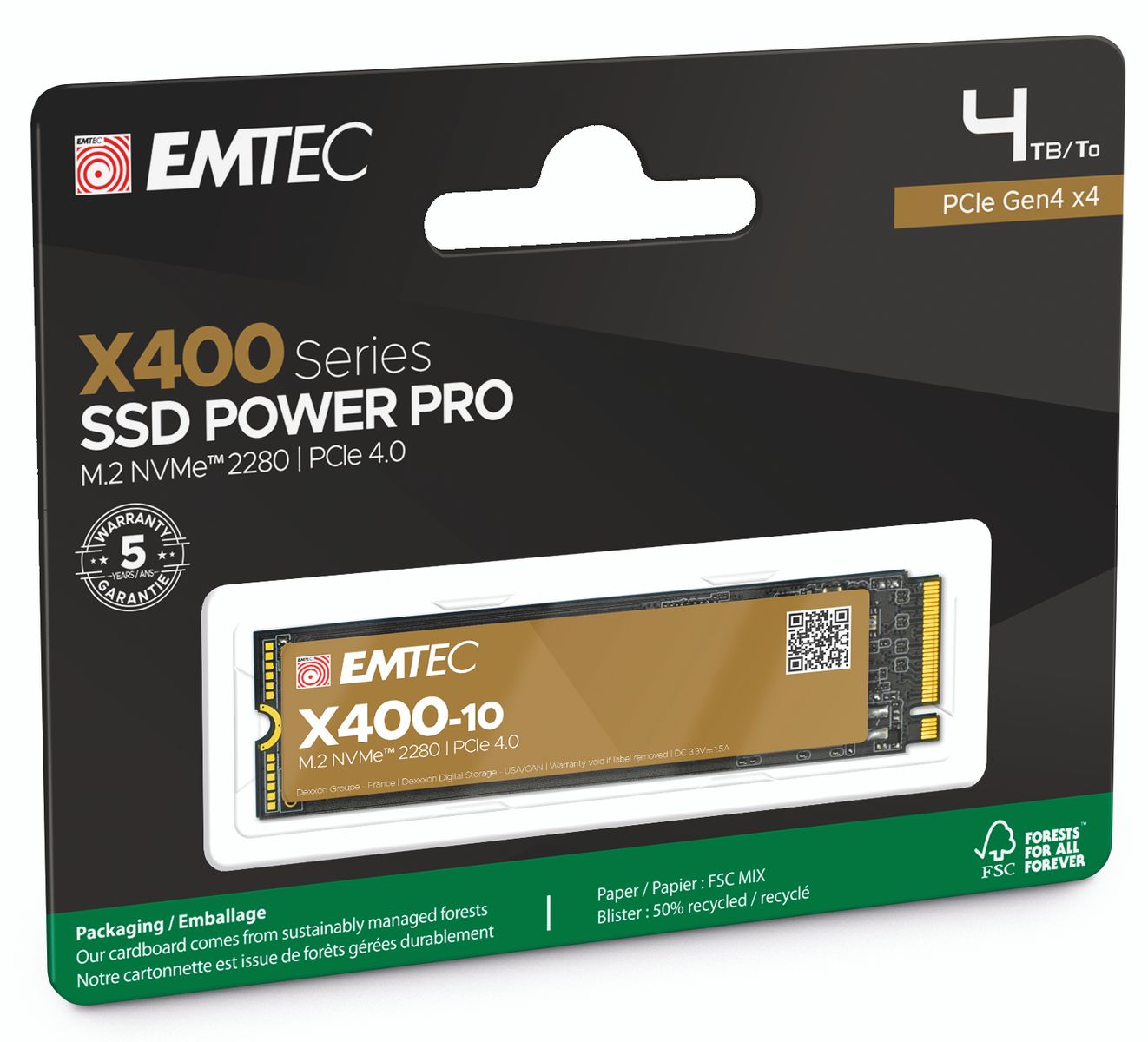 Emtec X400-10. Capacità SSD: 4 TB, Dimensione SSD: M.2, Velocità di lettura: 7400 MB/s, Velocità di scrittura: 7000 MB/s, Componente per: Console da gioco