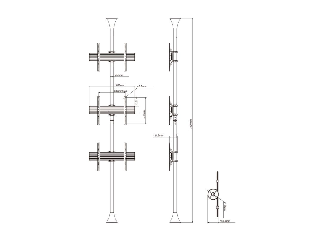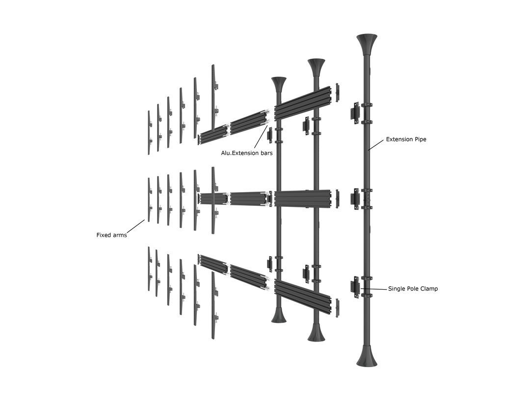 Multibrackets 3644. Peso massimo (capacità): 90 kg, Capienza minima dimensioni dello schermo: 101,6 cm (40"), Capienza massima dimensioni dello schermo: 165,1 cm (65"), Compatibilità interfaccia di montaggio (min): 100 x 100 mm, Compatibilità interfaccia di montaggio (max): 800 x 600 mm. Range di regolazione altezza: 580 - 1550 mm. Colore del prodotto: Nero