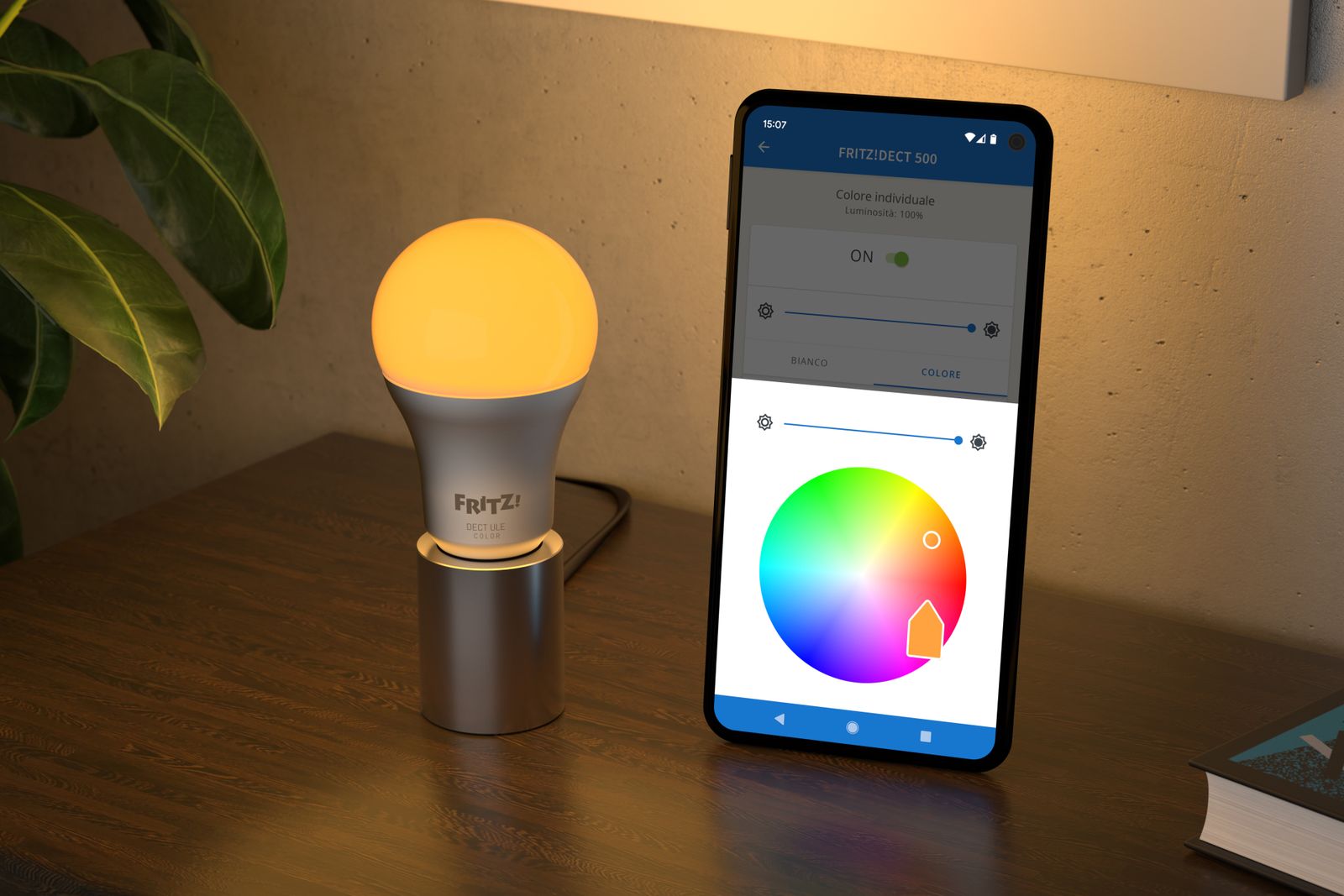 FRITZ!DECT 500 INT. Tipo: Lampadina intelligente, Colore del prodotto: Argento, Bianco, Tipo di lampada: LED. Classe efficienza energetica: F, Consumo di energia per 1.000 ore: 10 kWh, Scala di efficienza energetica: Da A a G. Larghezza: 62 mm, Profondità: 62 mm, Altezza: 118 mm. Quantità per pacco: 1 pz. Intervallo temperatura di funzionamento: 0 - 40 °C