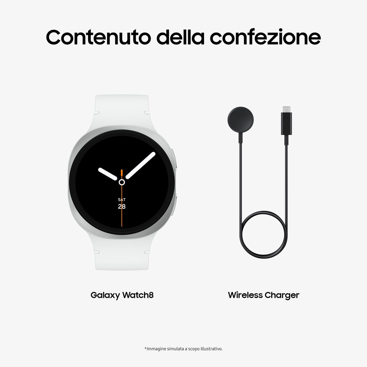 Samsung Galaxy Watch8 (Silver, BT, 44mm) Smartwatch Galaxy AI, allenatore personale, design resistente agli urti, processore 3nm, monitoraggio attività fisica e sonno, One UI 8. Dimensioni diagonale schermo: 3,81 cm (1.5"), Tecnologia display: AMOLED, Risoluzione del display: 480 x 480 Pixel, Touch screen. Capacità RAM: 2000 MB, Memoria flash: 32 GB. Wi-Fi. GPS (satellitare). Capacità della batteria: 435 mAh. Peso: 34 g. Colore cinturino: Bianco. Sistema operativo incluso: Wear OS