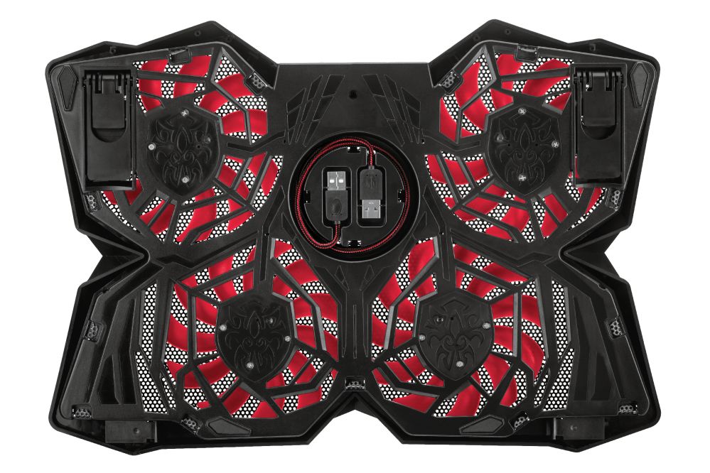 Trust GXT 278. Capienza massima dimensioni dello schermo: 43,9 cm (17.3"), Numero di ventilatori già presenti: 4 pz. Colore del prodotto: Nero, colore d'illuminazione: Rosso, Indicatori LED: Ventola estrattore fumi. Interfaccia host: USB. Tipologia alimentazione: USB, Voltaggio di ingresso: 5 V. Peso: 765 g