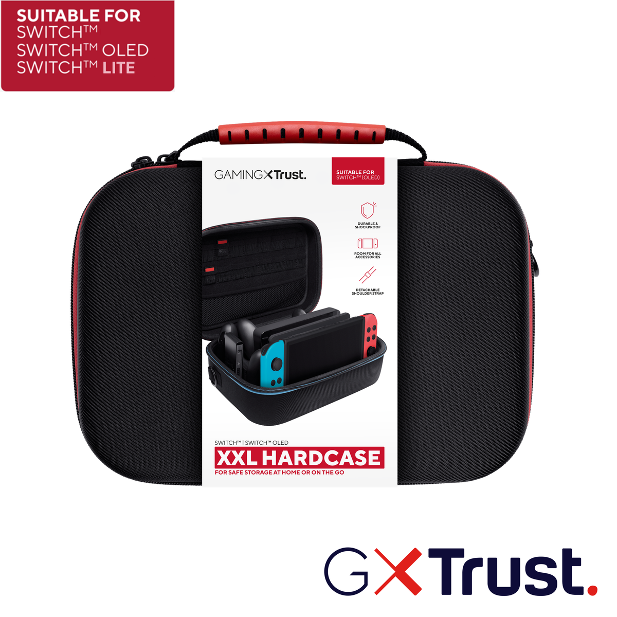 Trust GXT 1247. Tipologia custodia: Custodia rigida, Compatibilità marca: Nintendo, Colore del prodotto: Nero, Blu, Rosso. Larghezza: 310 mm, Profondità: 210 mm, Altezza: 130 mm. Durata della garanzia: 2 anno/i
