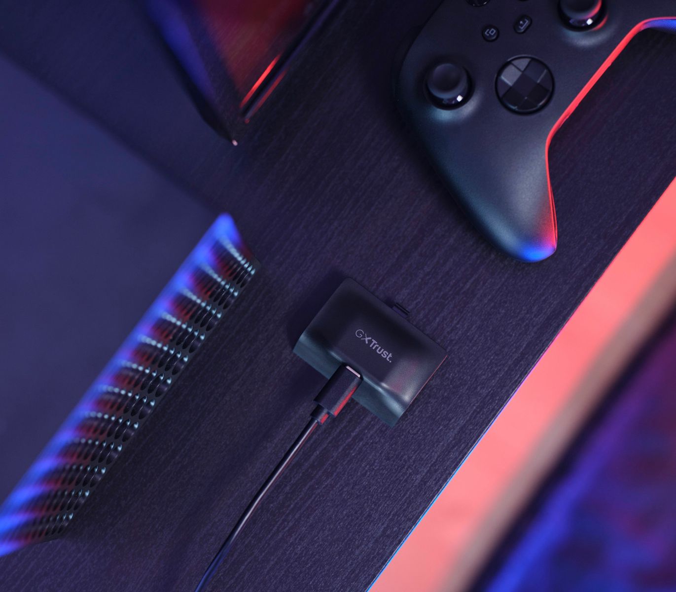 Trust GXT 246 Avado. Piattaforme di gioco supportate: Xbox Series S, Xbox Series X, Tipo di prodotto: Set di ricarica della batteria, Colore del prodotto: Nero. Durata batteria: 20 h, Tempo di ricarica: 4 h. Cavi inclusi: Da USB tipo C a USB tipo A. Quantità per pacco: 1 pz, Peso dell'imballo: 96 g. Larghezza: 56 mm, Profondità: 22 mm, Altezza: 44 mm