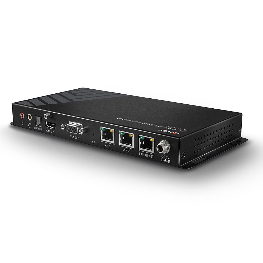 Lindy 38267. Tipo: Ricevitore AV, Risoluzione massima: 3840 x 2160 Pixel, Tipi di cavi supportati: Cat6. Tecnologia di connessione: Cablato, Connettore USB: USB tipo A, Tipo interfaccia seriale: RS-232. Tensione di esercizio: 5 V, Corrente d'ingresso: 4 A. Larghezza: 235 mm, Profondità: 25 mm, Altezza: 108 mm. Larghezza imballo: 225 mm, Profondità imballo: 190 mm, Altezza imballo: 80 mm