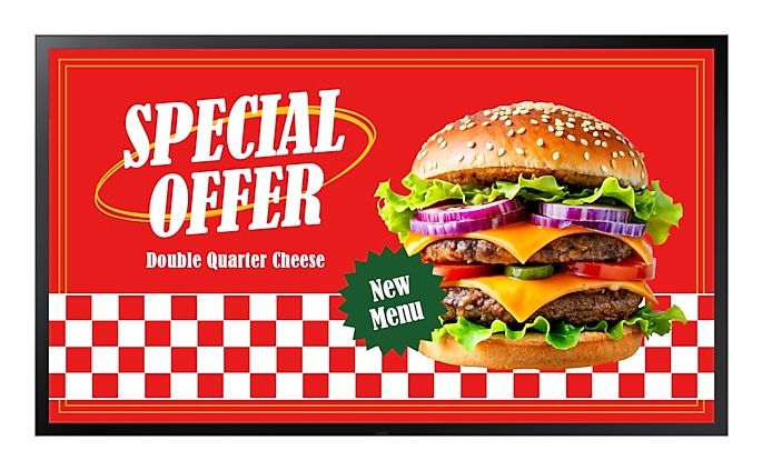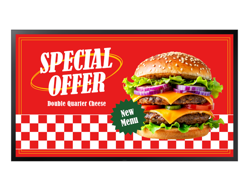 Samsung OHDX. Dimensioni diagonale schermo: 139,7 cm (55"), Risoluzione del display: 1920 x 1080 Pixel, Luminosità schermo: 3500 cd/m². Wi-Fi. Ore di servizio (ore/giorni): 24/7. Sistema operativo incluso: Tizen. Colore del prodotto: Nero