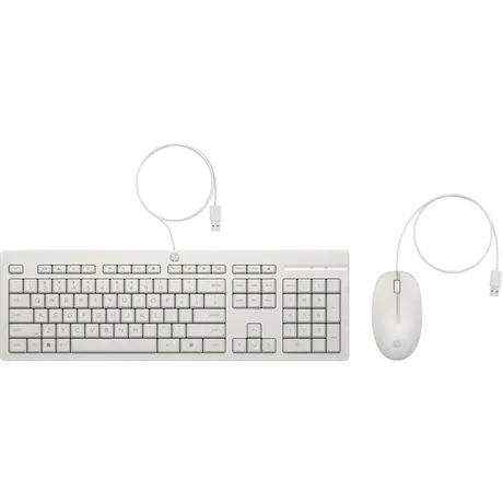 HP Mouse e tastiera 225 Wired. Fattore di forma tastiera: Full-size (100%), Tecnologia di connessione: Cablato, Interfaccia dispositivo: USB. Lunghezza cavo: 1,8 m. Utilizzo raccomandato: Ufficio. Colore del prodotto: Bianco. Mouse incluso