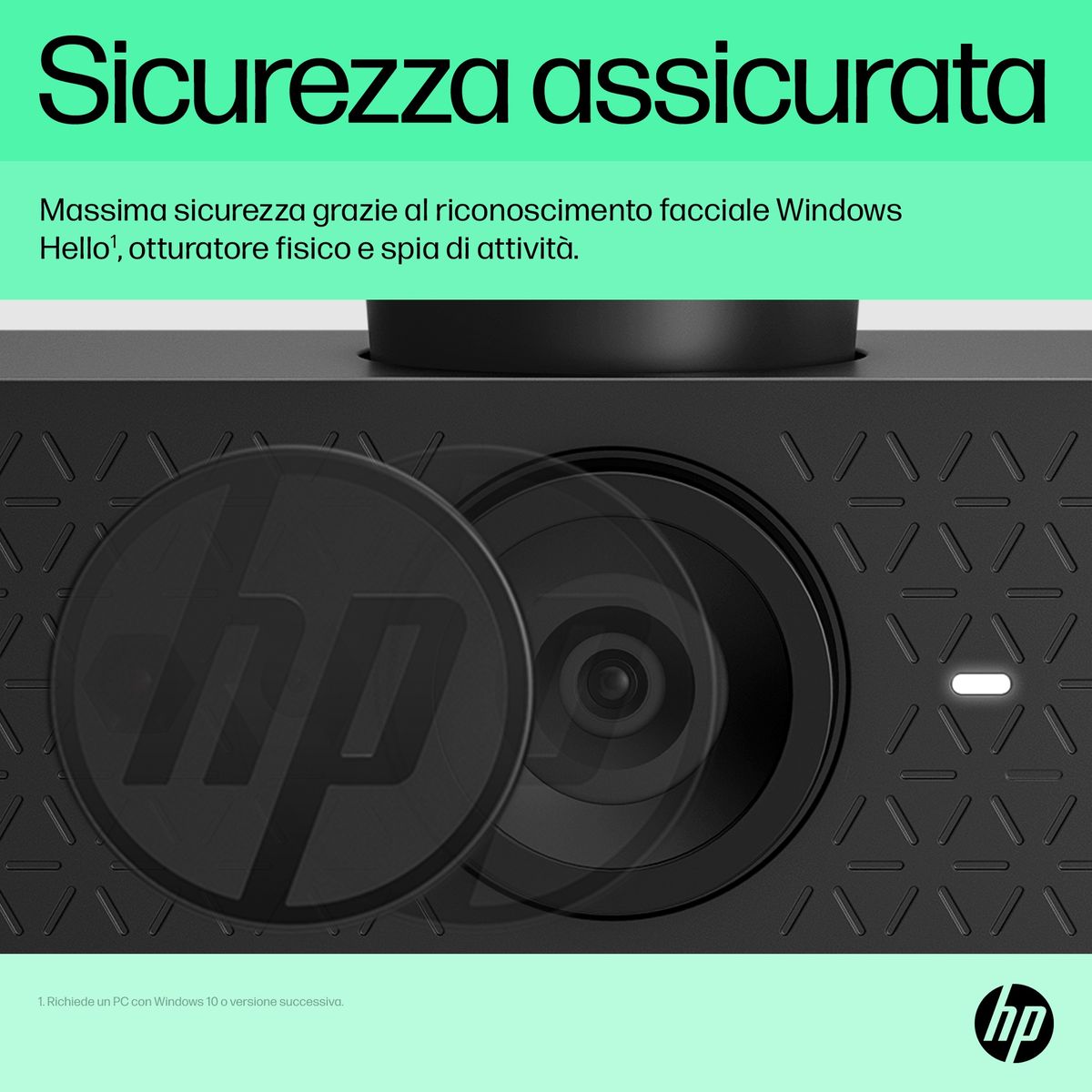 HP Webcam FHD 625. Megapixel: 4 MP, Risoluzione massima video: 1920 x 1080 Pixel, Tipo di videocamera HD: Full HD. Interfaccia: USB, Colore del prodotto: Nero, Tipo di montaggio: Clip. Larghezza: 95 mm, Profondità: 65,5 mm, Altezza: 55,5 mm. Larghezza imballo: 124 mm, Profondità imballo: 106 mm, Altezza imballo: 63 mm