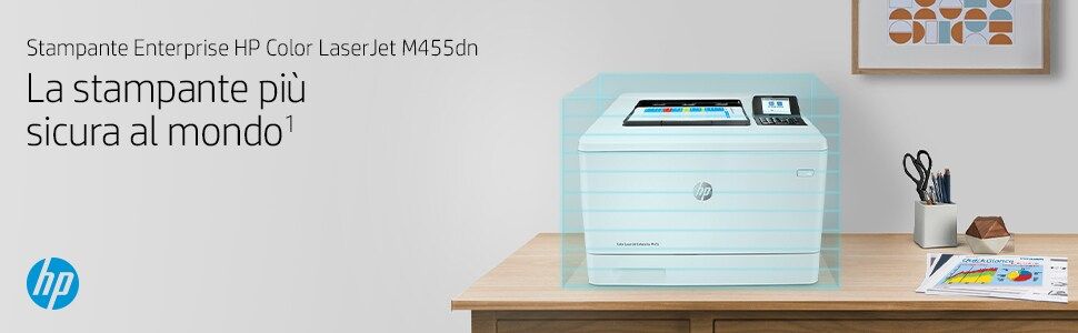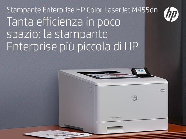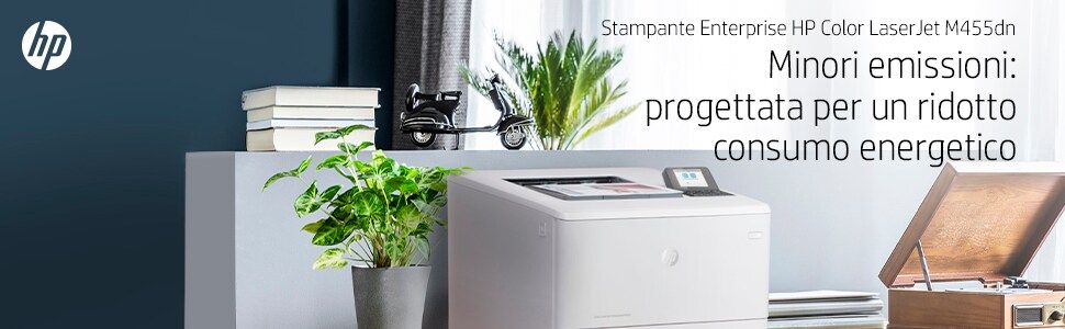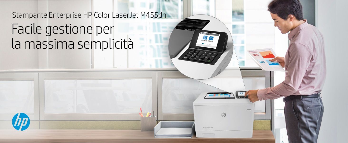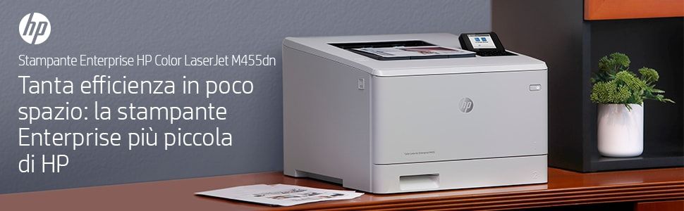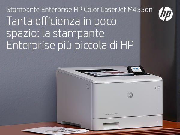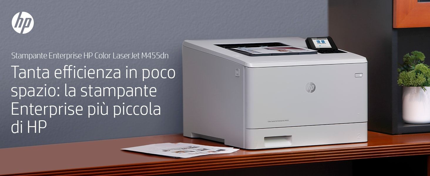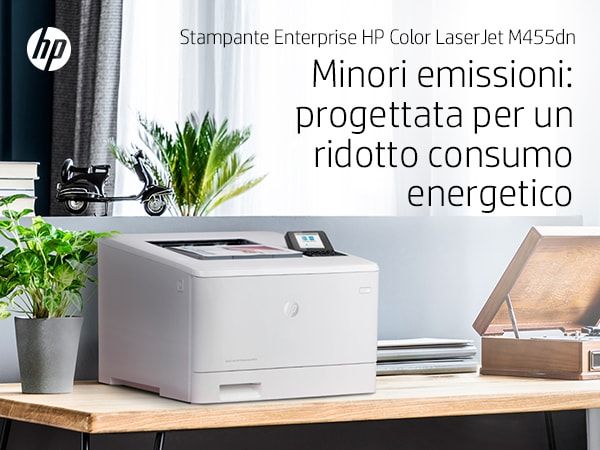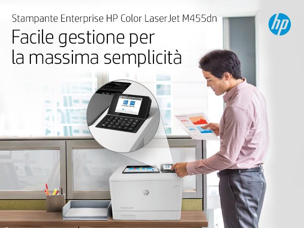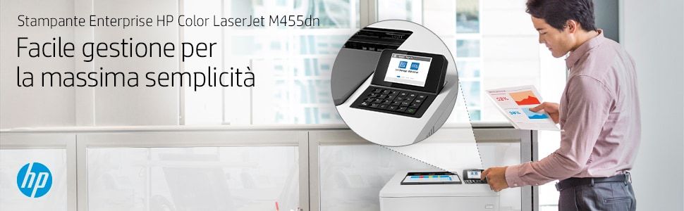 HP Color LaserJet Enterprise Stampante Enterprise Color LaserJet M455dn, Colore, Stampante per Aziendale, Stampa, Compatta; Avanzate funzionalità di sicurezza; Efficienza energetica; Stampa fronte/retro. Tecnologia di stampa: Laser, A colori. Numero di cartucce di stampa: 4, Ciclo massimo di funzionamento: 55000 pagine per mese. Risoluzione massima: 600 x 600 DPI. Massimo formato carta serie ISO A: A4. Velocità di stampa (nero, qualità normale, A4/US Letter): 27 ppm, Stampa fronte/retro. Tipologia display: LCD. Rete pronta. Colore del prodotto: Bianco