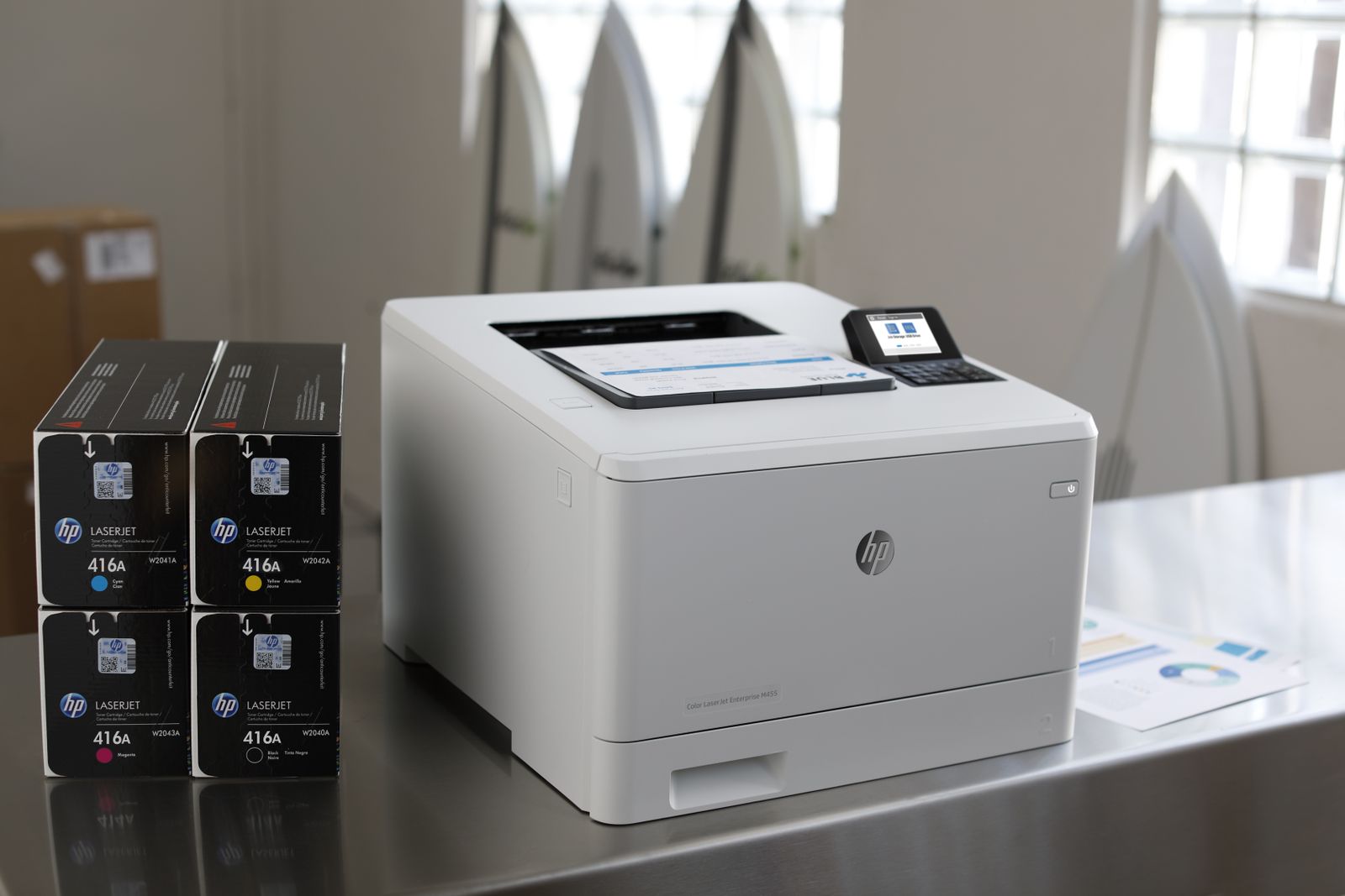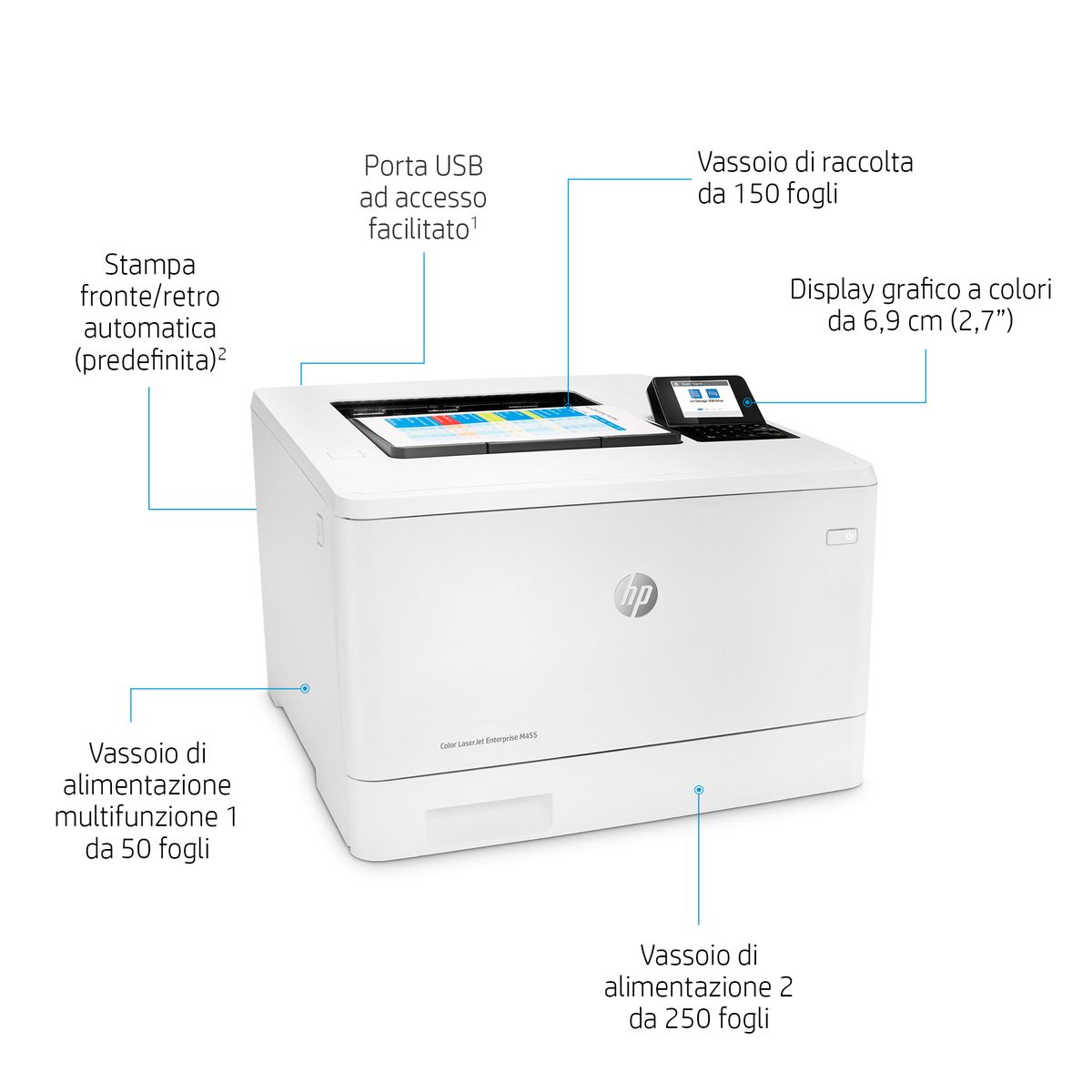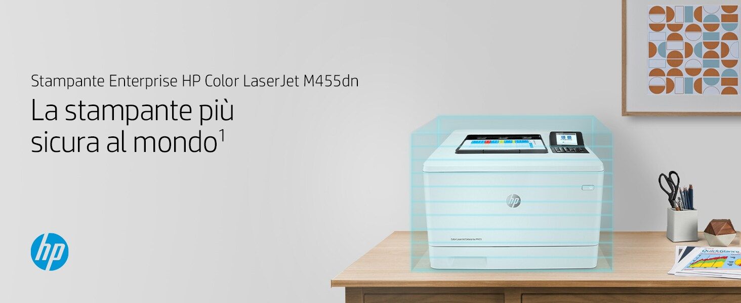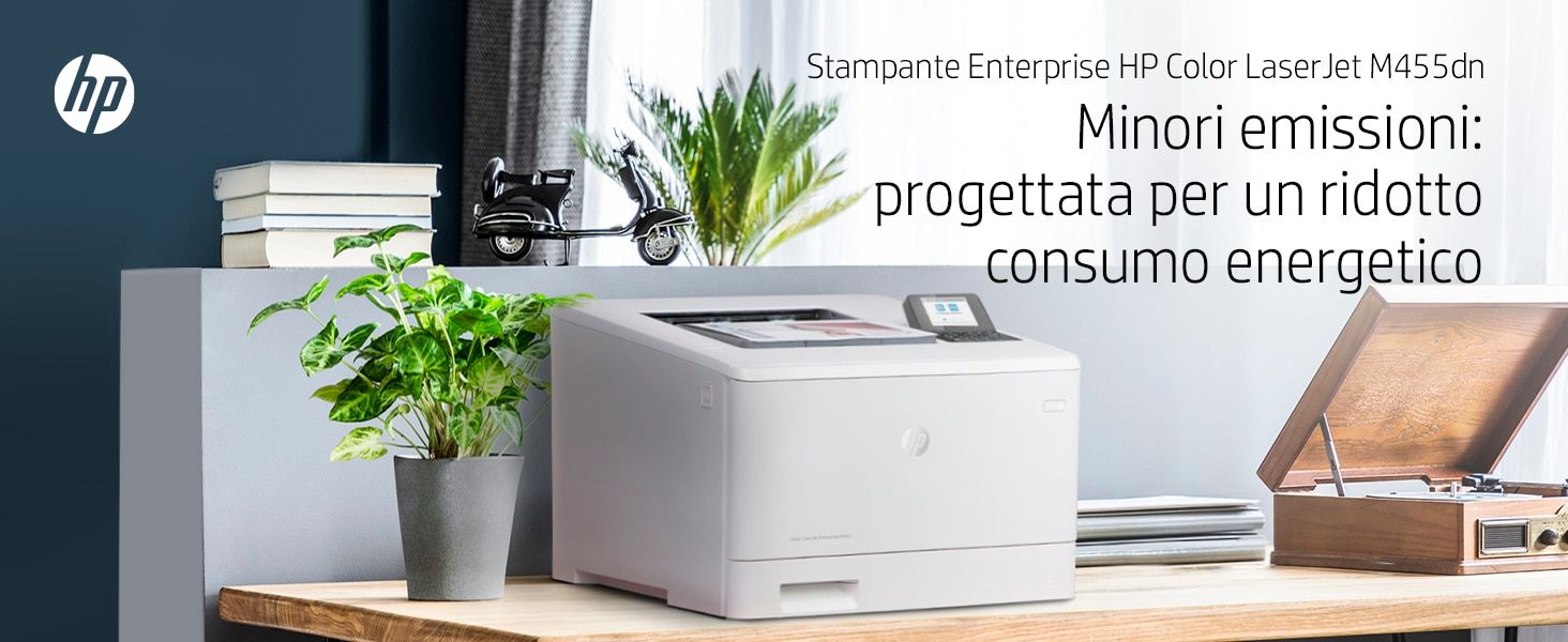HP Color LaserJet Enterprise Stampante Enterprise Color LaserJet M455dn, Colore, Stampante per Aziendale, Stampa, Compatta; Avanzate funzionalità di sicurezza; Efficienza energetica; Stampa fronte/retro. Tecnologia di stampa: Laser, A colori. Numero di cartucce di stampa: 4, Ciclo massimo di funzionamento: 55000 pagine per mese. Risoluzione massima: 600 x 600 DPI. Massimo formato carta serie ISO A: A4. Velocità di stampa (nero, qualità normale, A4/US Letter): 27 ppm, Stampa fronte/retro. Tipologia display: LCD. Rete pronta. Colore del prodotto: Bianco