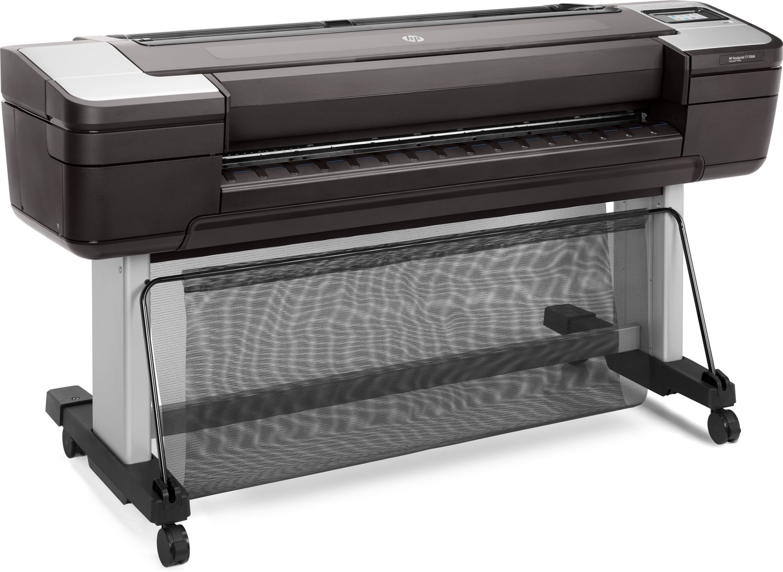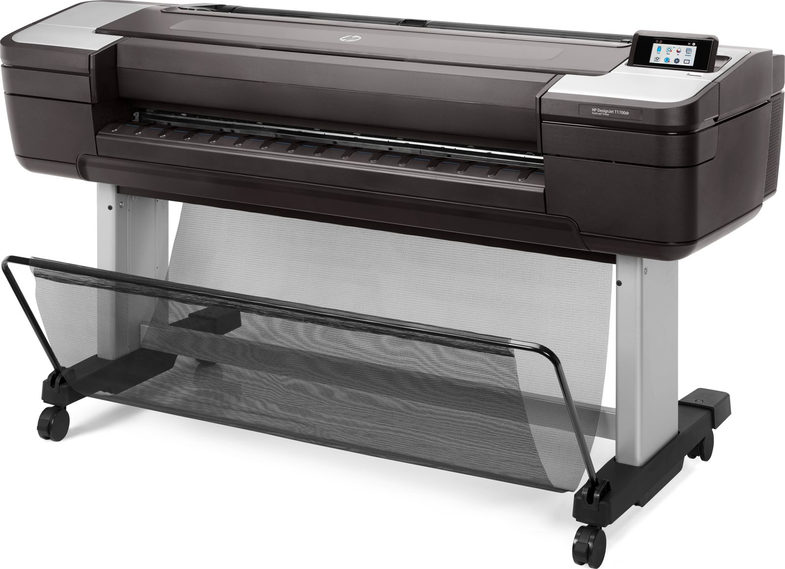 HP Designjet Stampante T1700dr PostScript da 44". Tecnologia di stampa: Getto termico d'inchiostro, Risoluzione massima: 2400 x 1200 DPI, Lingue di descrizione della pagina: HP-GL/2, PDF 1.7, PostScript 3, TIFF, URF. Precisione: 0,1%. Dimensioni massime di stampa: 1118 x 1676 mm, Tipi di supporti per vassoio della carta: Carta fine, Carta patinata, Carta lucida, Carta pesante, Carta opaca, Carta satinata, Dimensioni ISO serie-A (A0...A9): A0, A1, A2, A3, A4. Connettore USB: USB tipo A, Velocità trasferimento Ethernet LAN: 10,100,1000 Mbit/s. Colore del prodotto: Nero, RAM installata: 4096 MB, Capacità memoria interna: 500 GB