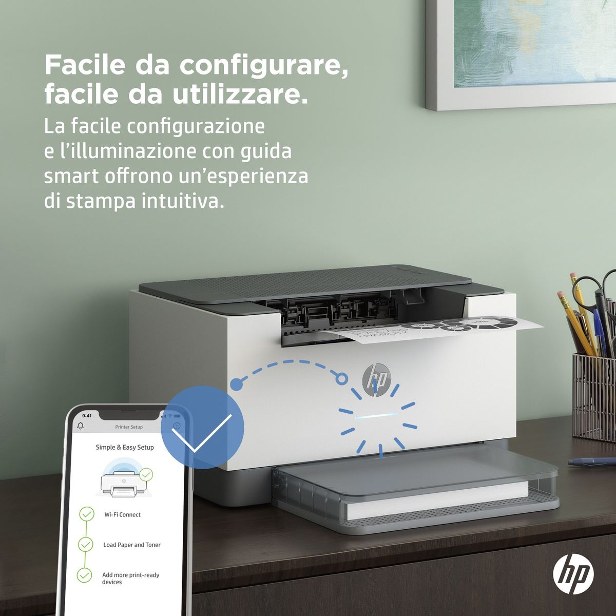 HP LaserJet Stampante M209dw, Bianco e nero, Stampante per Abitazioni e piccoli uffici, Stampa, Stampa fronte/retro; dimensioni compatte; risparmio energetico; Wi-Fi dual band. Tecnologia di stampa: Laser. Numero di cartucce di stampa: 1, Ciclo massimo di funzionamento: 20000 pagine per mese. Risoluzione massima: 600 x 600 DPI. Massimo formato carta serie ISO A: A4. Velocità di stampa (nero, qualità normale, A4/US Letter): 29 ppm, Stampa fronte/retro. Wi-Fi. Colore del prodotto: Bianco