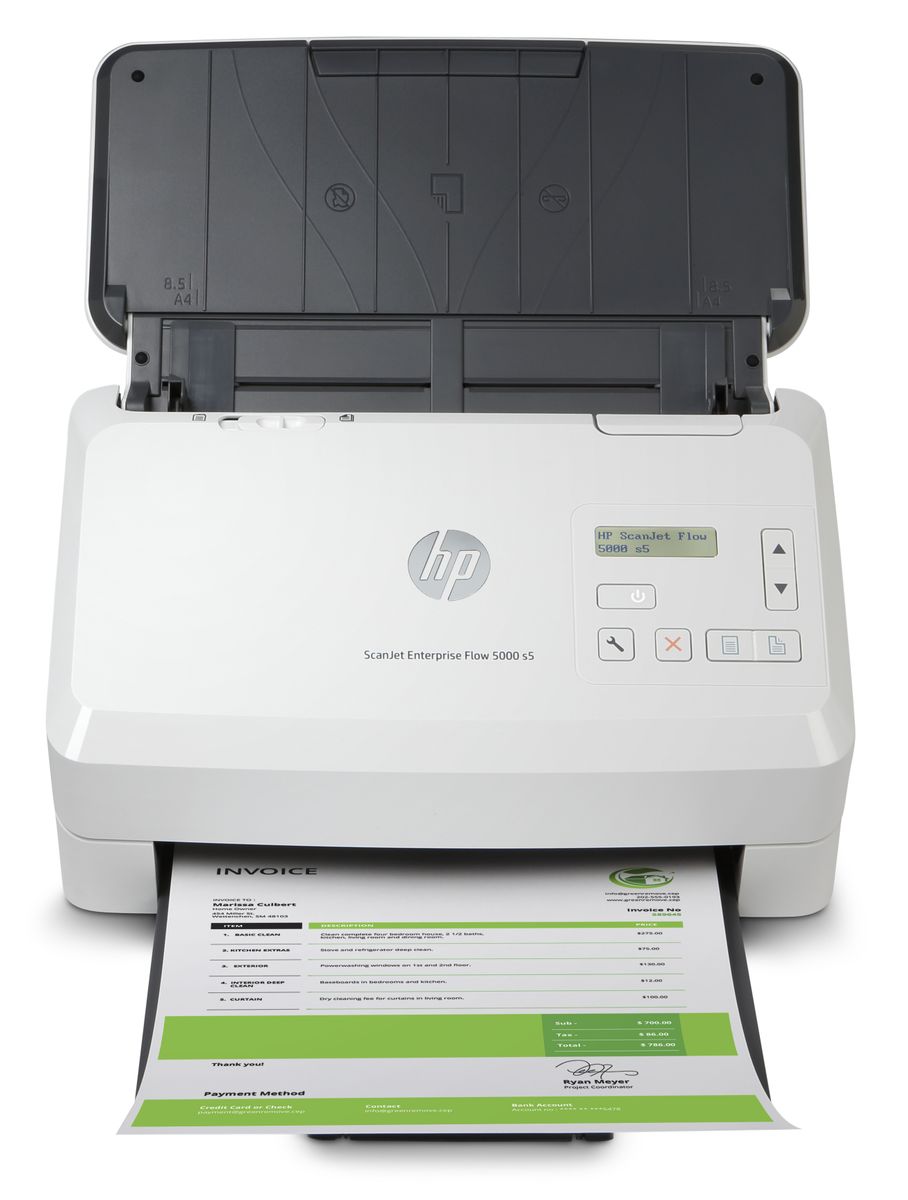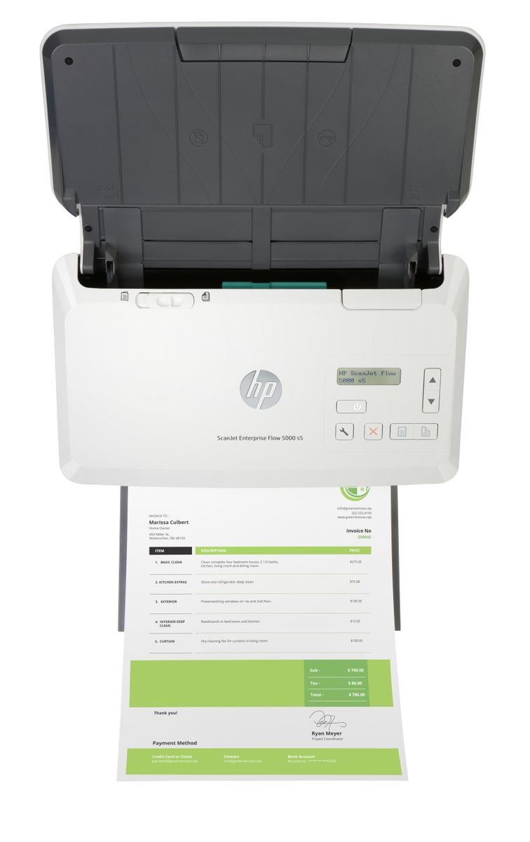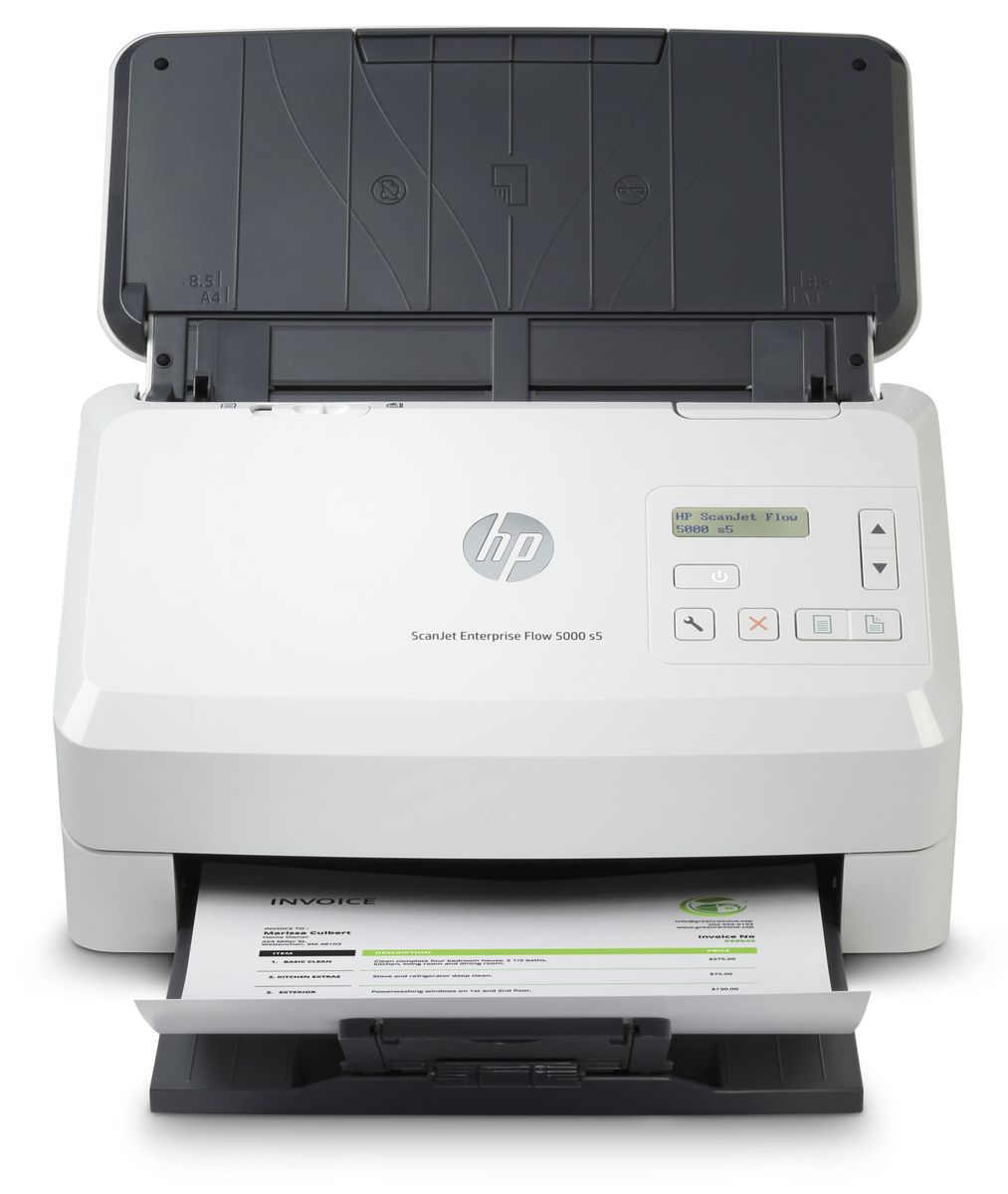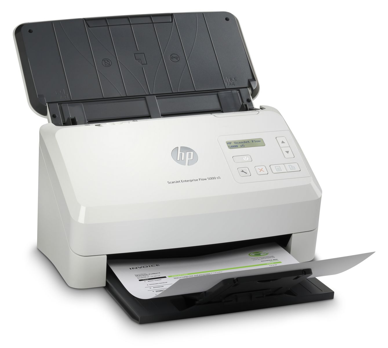 HP Scanjet Enterprise Flow 5000 s5. Massima dimensione di scansione: 216 x 3100 mm, Risoluzione di scansione ottica: 600 x 600 DPI. Tipo di scansione: Scanner a foglio, Colore del prodotto: Bianco. Tipo sensore: CMOS CIS, Ciclo di funzionamento quotidiano (max): 7500 pagine, Rumorosità (in scansione): 65 dB. Capacità documenti: 80 fogli. Massimo formato carta serie ISO A: A4