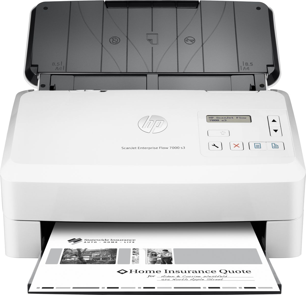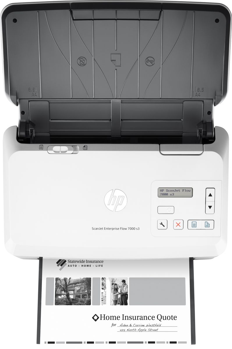 HP Scanjet Enterprise Flow 7000 s3. Massima dimensione di scansione: 216 x 3100 mm, Risoluzione di scansione ottica: 600 x 600 DPI, Profondità di scansione del colore in entrata: 24 bit. Tipo di scansione: Scanner a foglio, Colore del prodotto: Bianco, Tipologia display: LCD. Tipo sensore: CMOS CIS, Ciclo di funzionamento quotidiano (max): 7500 pagine, Formati file scanner: BMP, JPG, PDF, PNG, RTF, TIFF, TXT, XLS, XML, XPS. Capacità documenti: 80 fogli. Massimo formato carta serie ISO A: A4, Dimensioni ISO serie-A (A0...A9): A4, A5, A6, A7, A8, Dimensioni ISO serie-B (B0...B9): B5
