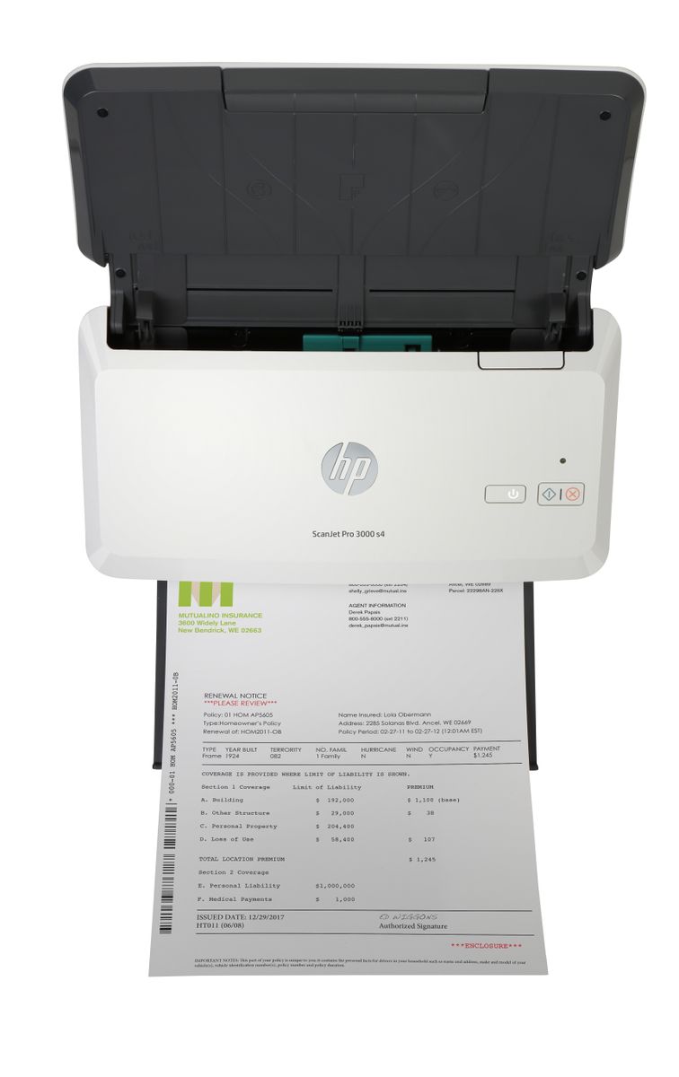 HP Scanjet Pro 3000 s4. Massima dimensione di scansione: 216 x 3100 mm, Risoluzione di scansione ottica: 600 x 600 DPI, Profondità di scansione del colore in entrata: 48 bit. Tipo di scansione: Scanner a foglio, Colore del prodotto: Nero, Bianco. Tipo sensore: CMOS CIS, Ciclo di funzionamento quotidiano (max): 4000 pagine, Scansione a: PC, USB. Capacità documenti: 50 fogli. Massimo formato carta serie ISO A: A4, Dimensioni ISO serie-A (A0...A9): A4, A5, A6, A7, A8, Dimensioni ISO serie-B (B0...B9): B5