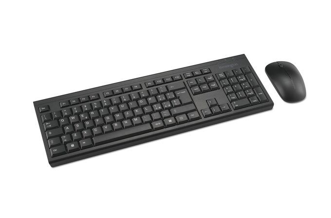 Kensington Set da scrivania wireless KM150 EQ. Fattore di forma tastiera: Full-size (100%), Tecnologia di connessione: Wireless, Interfaccia dispositivo: RF Wireless, Interruttore a chiave per tastiera: Interruttore a chiave a membrana, Struttura tastiera: QWERTY, Numero pulsanti tastiera: 105, Utilizzo raccomandato: Ufficio. Colore del prodotto: Nero. Mouse incluso