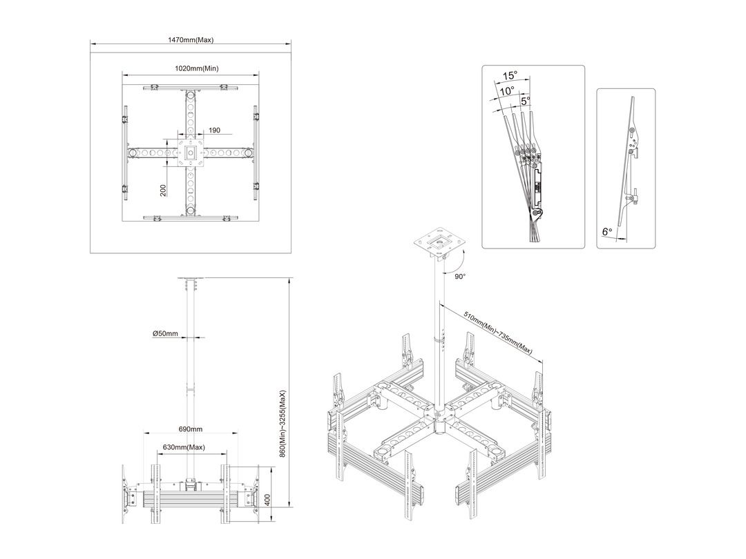 Multibrackets 3538. Peso massimo (capacità): 120 kg, Capienza minima dimensioni dello schermo: 101,6 cm (40"), Capienza massima dimensioni dello schermo: 165,1 cm (65"), Compatibilità interfaccia di montaggio (min): 100 x 100 mm, Compatibilità interfaccia di montaggio (max): 800 x 600 mm. Range di regolazione altezza: 870 - 3270 mm, Inclinazione: 0 - 15°, Angolo di rotazione: 360°. Colore del prodotto: Nero