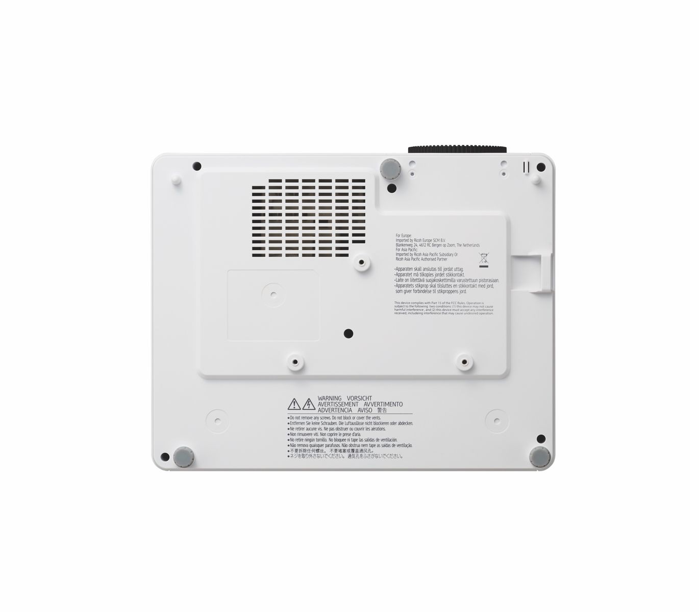 Ricoh PJ WUL5860. Luminosità proiettore: 4000 ANSI lumen, Tecnologia di proiezione: DLP, Risoluzione nativa del proiettore: WUXGA (1920x1200). Tipo di sorgente luminosa: Laser, Durata della sorgente luminosa: 20000 h. Messa a fuoco: Manuale, Lunghezza focale: 12.815 - 16.74 mm, Range di apertura (F-F): 1,94 - 2,23. Tipo interfaccia seriale: RS-232C, Versione HDMI: 1.4/2.0. Velocità trasferimento Ethernet LAN: 10,100 Mbit/s