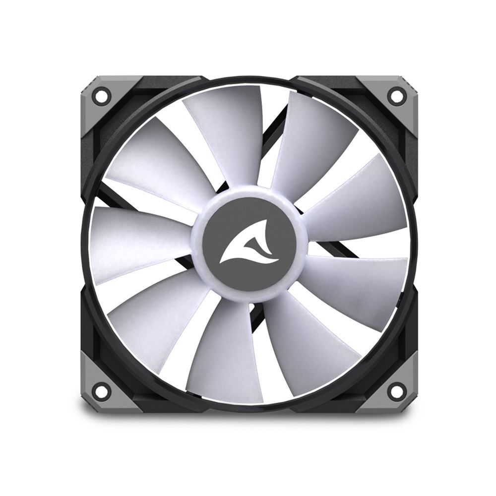 Sharkoon S90 RGB. Tipo: Raffreddatore di liquidi tutto in uno, Diametro del ventilatore: 12 cm, Velocità (minima) di rotazione: 600 Giri/min, Velocità (massima) di rotazione: 2000 Giri/min, Rumorosità (velocità alta): 35 dB, Flusso d'aria: 131,93 m³/h, pressione dell'aria massima: 2,9 mmH2O. Colore del prodotto: Nero