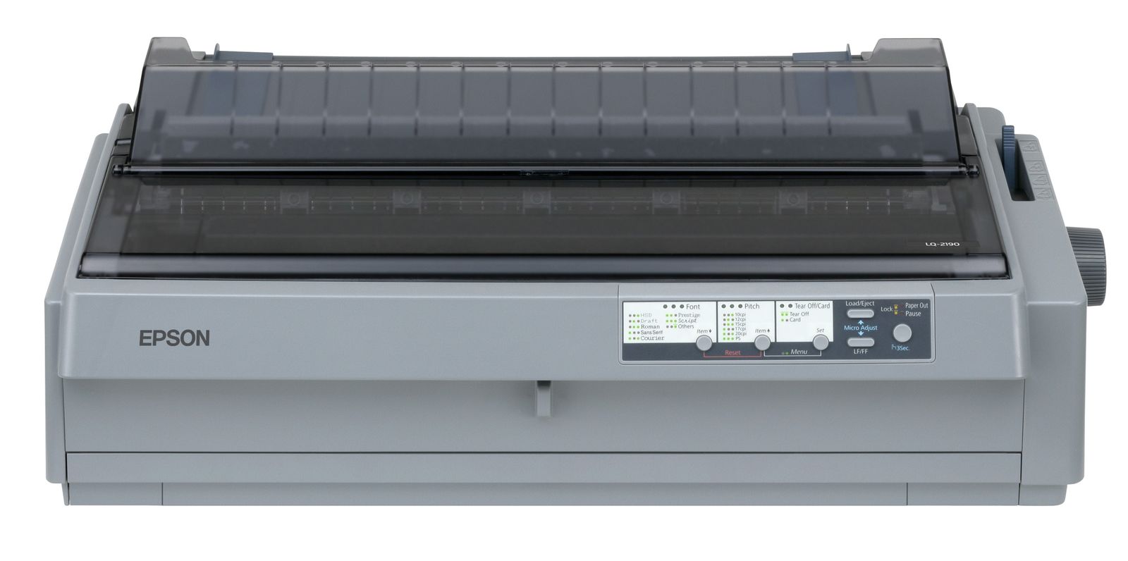 Epson LQ-2190. Massima velocità di stampa: 576 cps, Risoluzione massima: 360 x 180 DPI, Massima velocità di stampa (draft): 432 cps. Dimensioni massime di stampa: A3 (297 x 420 mm), Tipi di supporti per vassoio della carta: Buste, Etichette, Rotolo. Colore del prodotto: Grigio, Dimensioni buffer: 128 KB, Livello di pressione acustica (stampa): 54 dB. Interfaccia standard: Parallelo, USB 2.0, Connettività opzionale: Ethernet. Testina di stampa: 24-pin, Direzione di stampa: Bi-direzionale, Durata testina di stampa: 400 milioni di caratteri