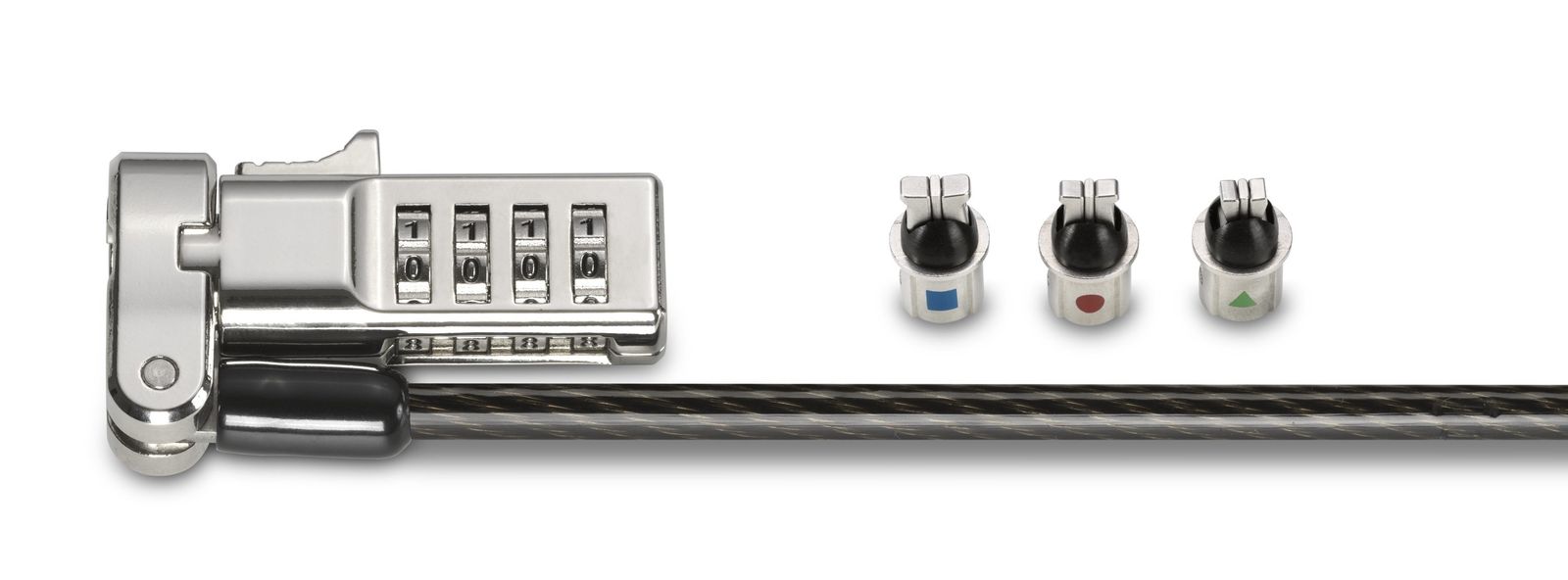 Kensington Lucchetto per laptop universale 3 in 1 con combinazione. Colore del prodotto: Nero, Utilizzo: Computer portatile, Tipo di serratura: Blocco di combinazione. Lunghezza cavo: 1,8 m. Quantità per pacco: 1 pz, Larghezza imballo: 150 mm, Profondità imballo: 150 mm