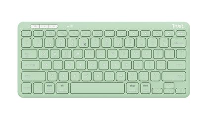 Trust Lyra Tastiera wireless compatta. Fattore di forma tastiera: Mini. Stile tastiera: Dritto. Tecnologia di connessione: Wireless, Interfaccia dispositivo: RF senza fili + Bluetooth, Interruttore a chiave per tastiera: Tasto con meccanismo a forbici, Struttura tastiera: QWERTY, Utilizzo raccomandato: Casa/ufficio. Colore del prodotto: Verde