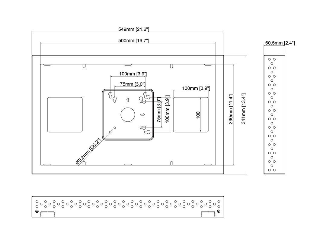 Multibrackets 1041. Materiali: Acciaio, Colore del prodotto: Nero, Orientamento: Paesaggio. Larghezza: 549 mm, Profondità: 60,5 mm, Altezza: 341 mm. Larghezza imballo: 590 mm, Profondità imballo: 380 mm, Altezza imballo: 65 mm