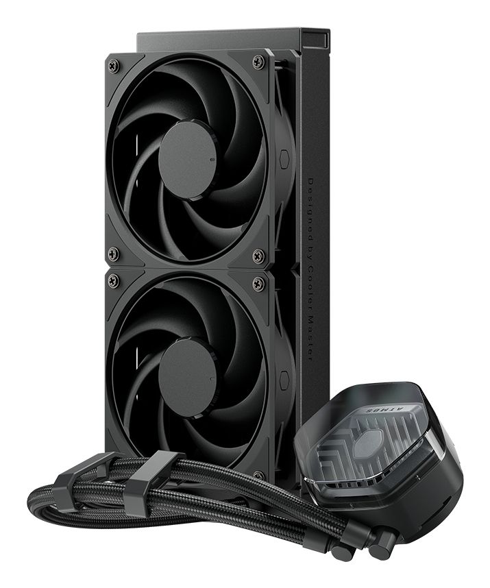 Cooler Master MasterLiquid ATMOS Stealth Series. Tipo: Kit di raffreddamento a liquido, Diametro del ventilatore: 12 cm, Velocità (minima) di rotazione: 0 Giri/min, Velocità (massima) di rotazione: 2400 Giri/min, Flusso d'aria: 127,6 m³/h, pressione dell'aria massima: 3,63 mmH2O, Tipo di cuscinetto: Loop Dynamic Bearing (LDB). Colore del prodotto: Nero