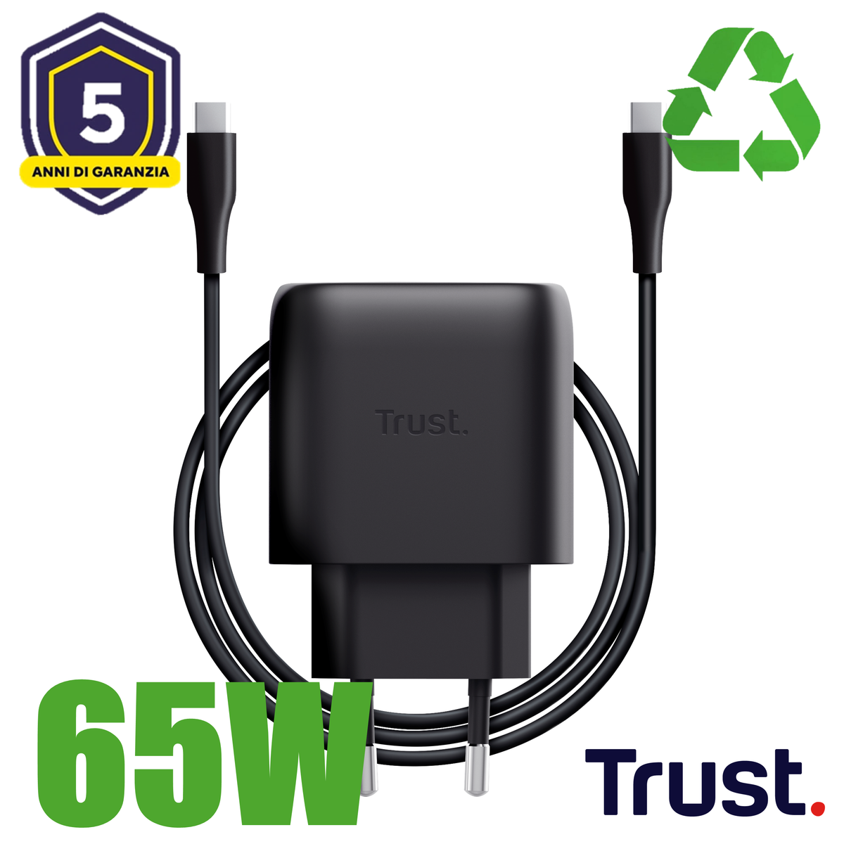 Trust Maxo Caricabatteria USB-C GaN da 45 W. Tipo di caricatore: Interno, Tipologia alimentazione: AC, Compatibilità caricatore: Universale. Tensione di uscita (max): 20 V. Ricarica rapida, Funzionalità di protezione dell'alimentazione: Surriscaldamento, Sovraccarico, Cortocircuito. Lunghezza cavo: 2 m, Colore del prodotto: Nero